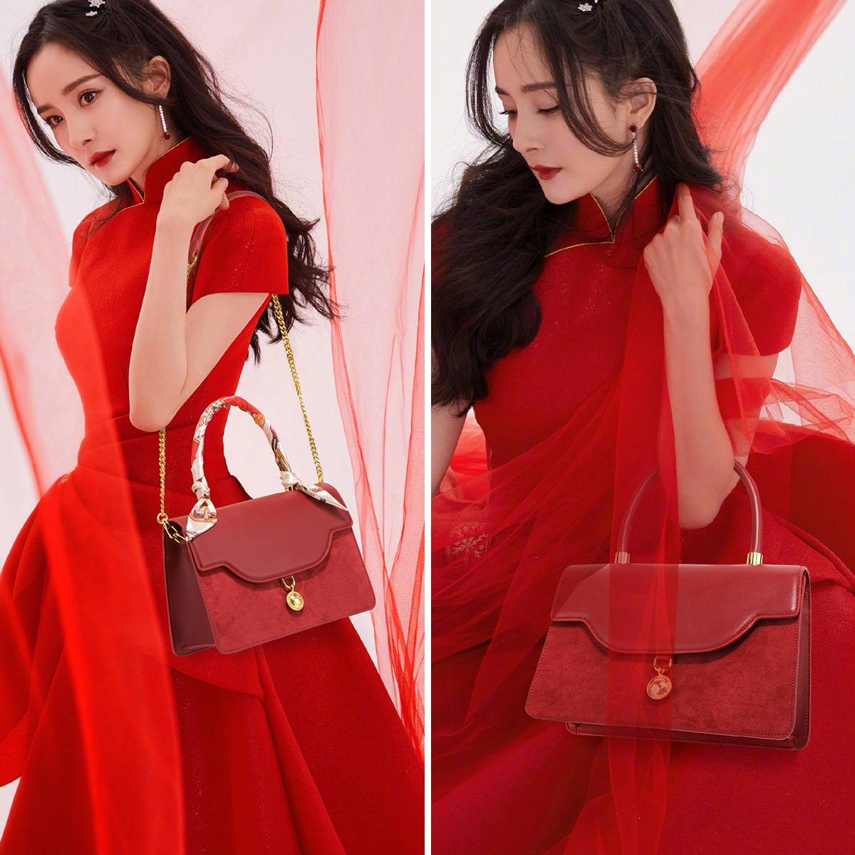 红色结婚包包复古丝绒包包女斜挎手提小方包高级感手提新娘包