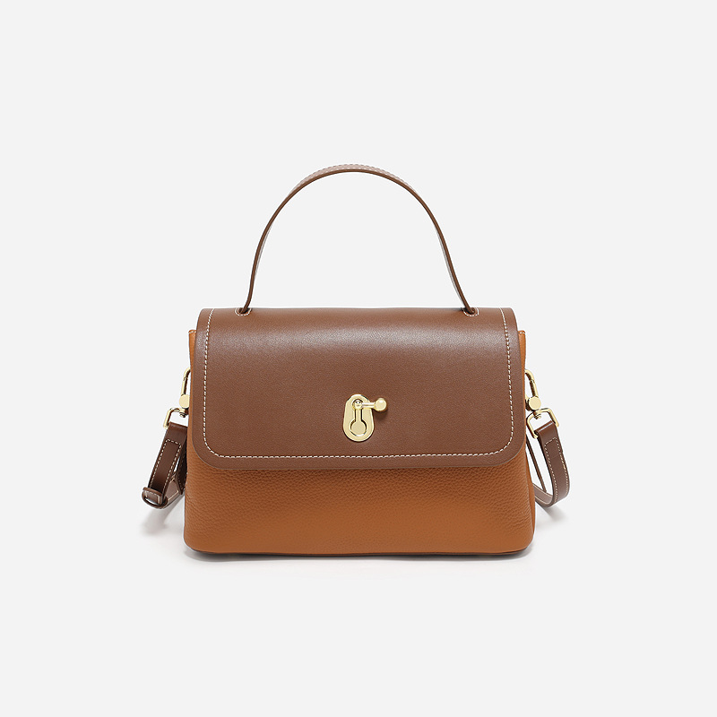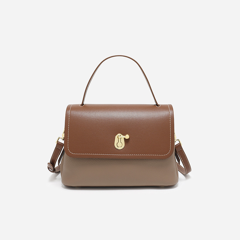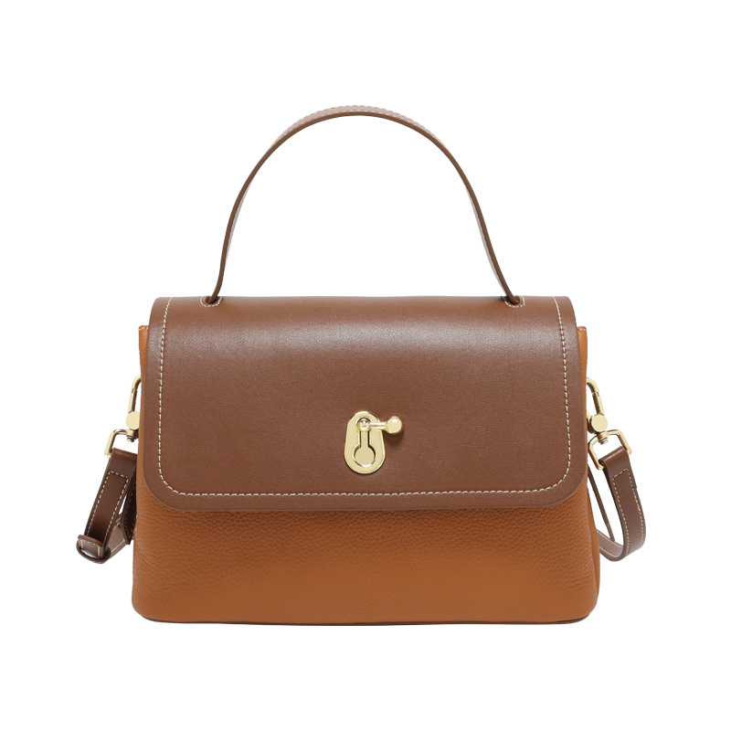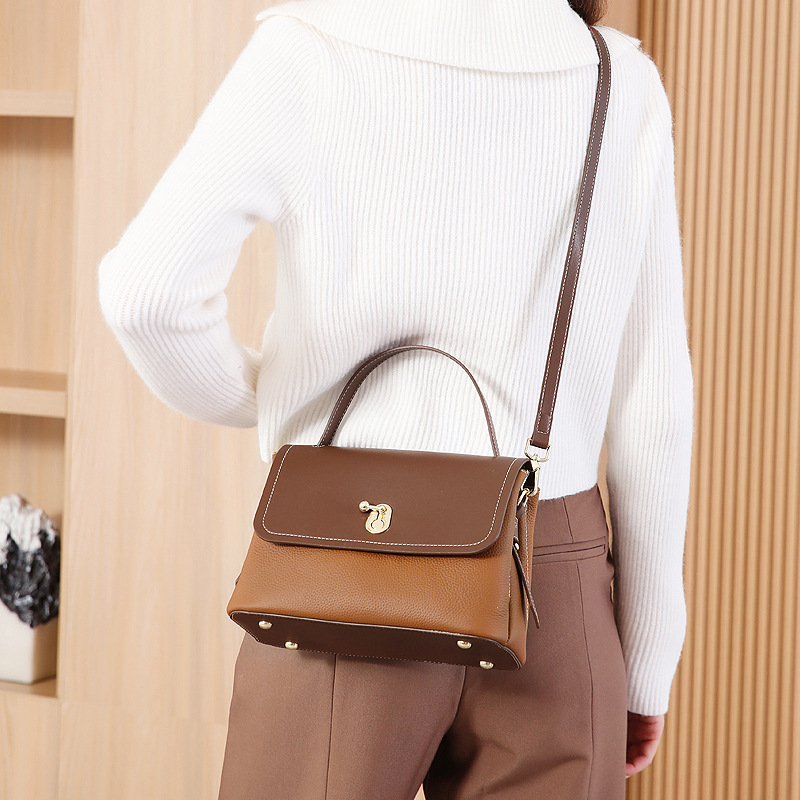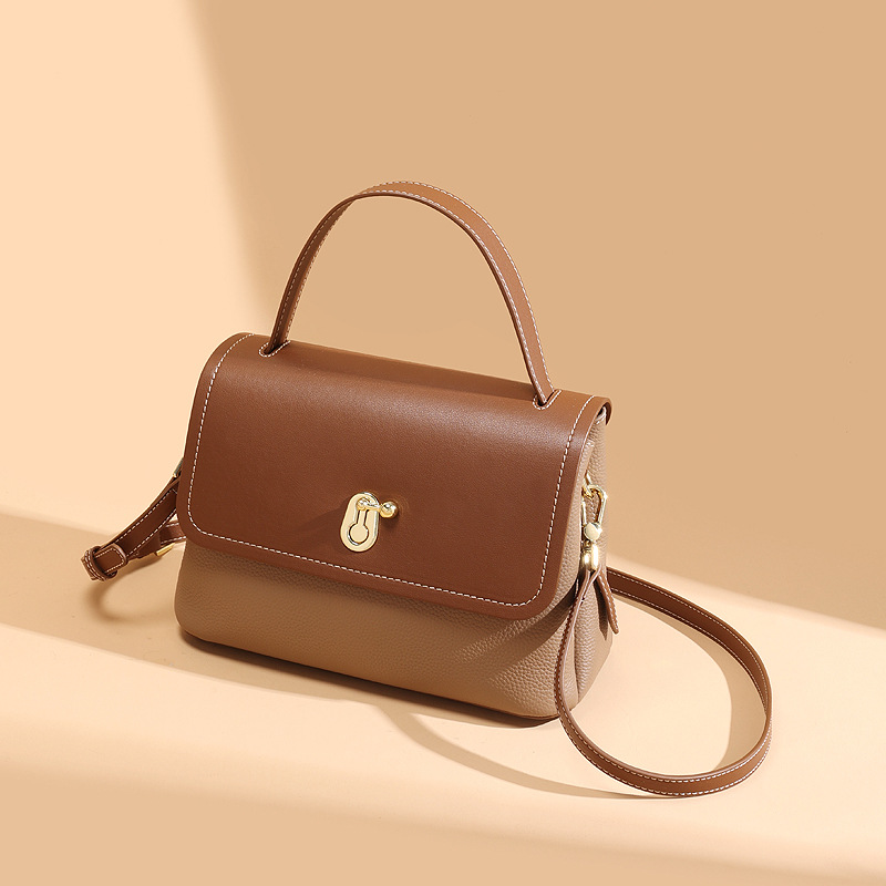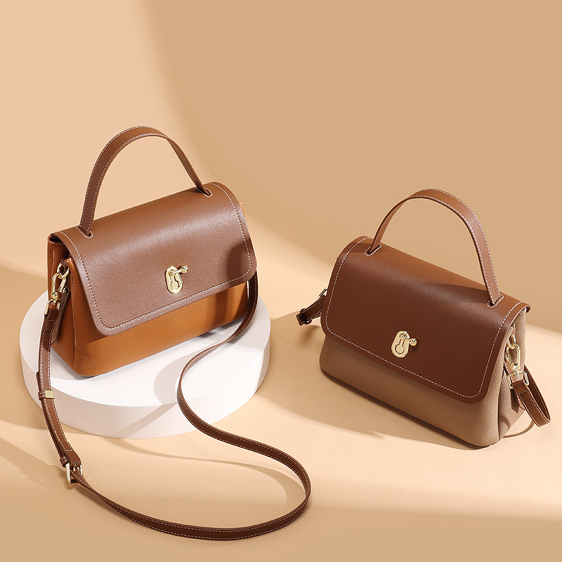 真皮女包轻奢通勤单肩包头层牛皮高级感手提包撞色百搭斜挎包包女