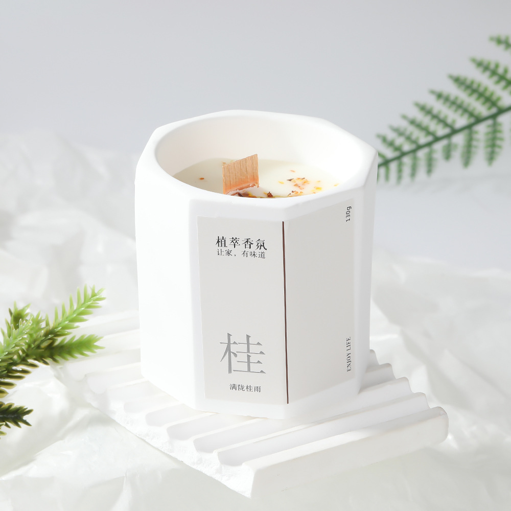 新中式八角杯桂花香薰蜡烛石膏卧室持久熏香家用氛围感香薰伴手礼