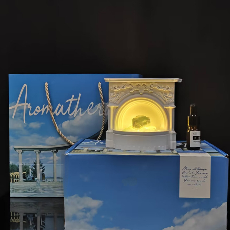 水晶石香薰灯礼盒生日送男生朋友原创复古壁炉无火香薰扩香石摆件