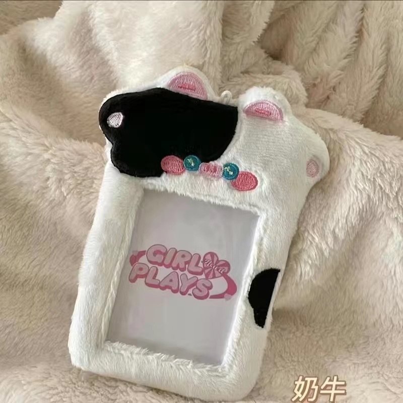 日系韩系毛绒卡套钥匙扣 可爱萌nis拍立得学生高颜值饭卡包挂件