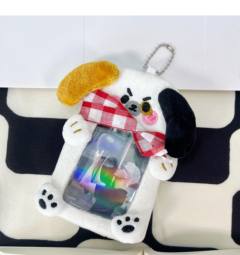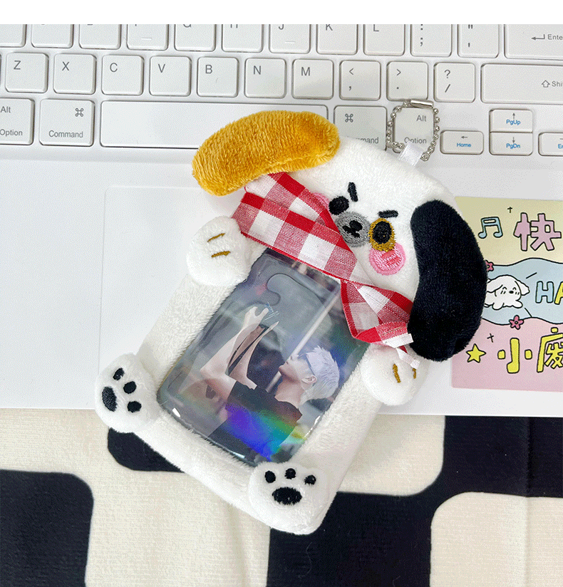 韩系可爱围巾小狗毛绒卡套 ins风学生卡保护套高颜值小卡包挂件