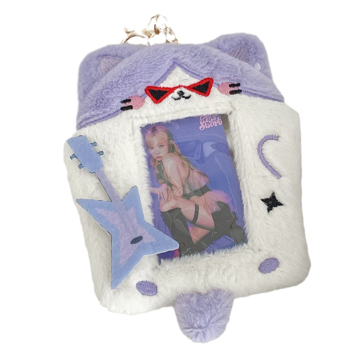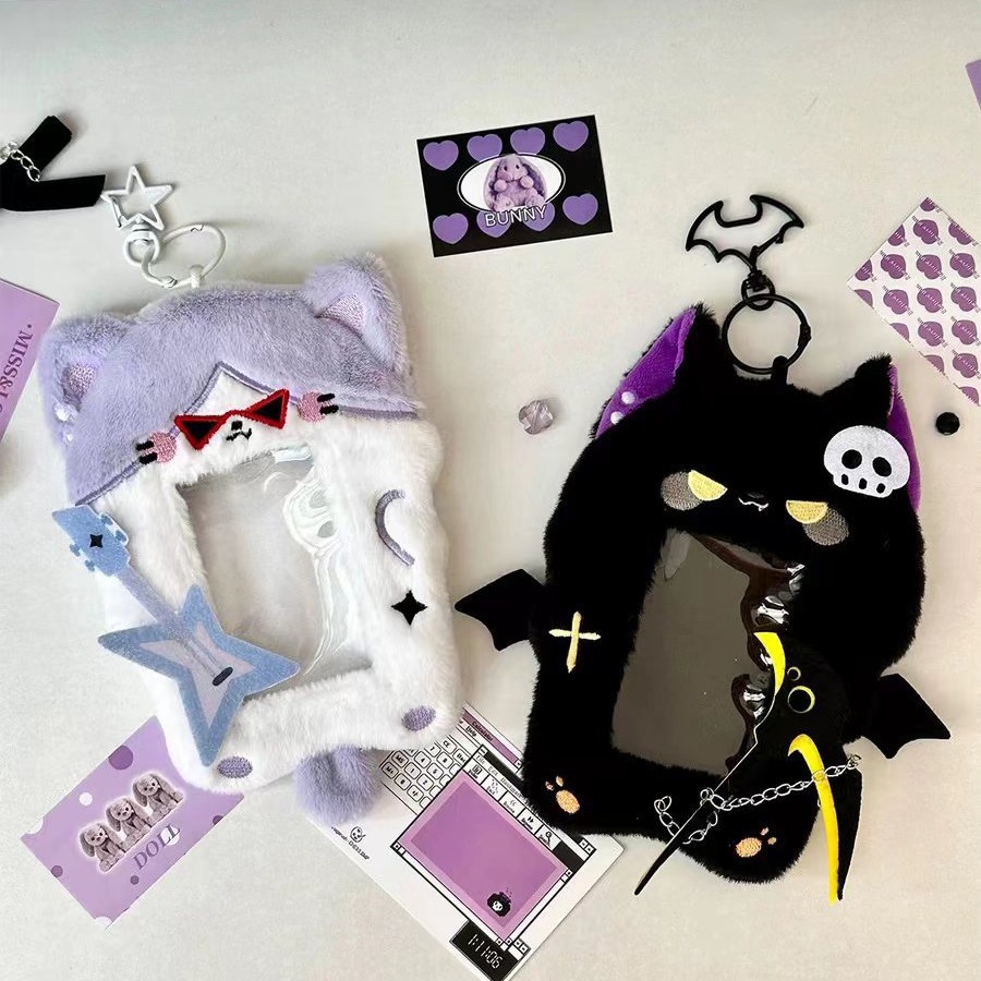 墨镜贝斯猫咪毛绒卡套可爱卡通ins 风校园卡拍立得爱豆卡咕卡挂件