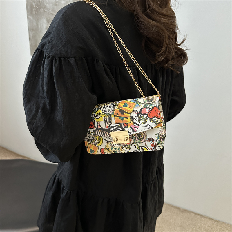 超火小众涂鸦包包女式新款流行百搭链条斜挎包时尚爆款小方包
