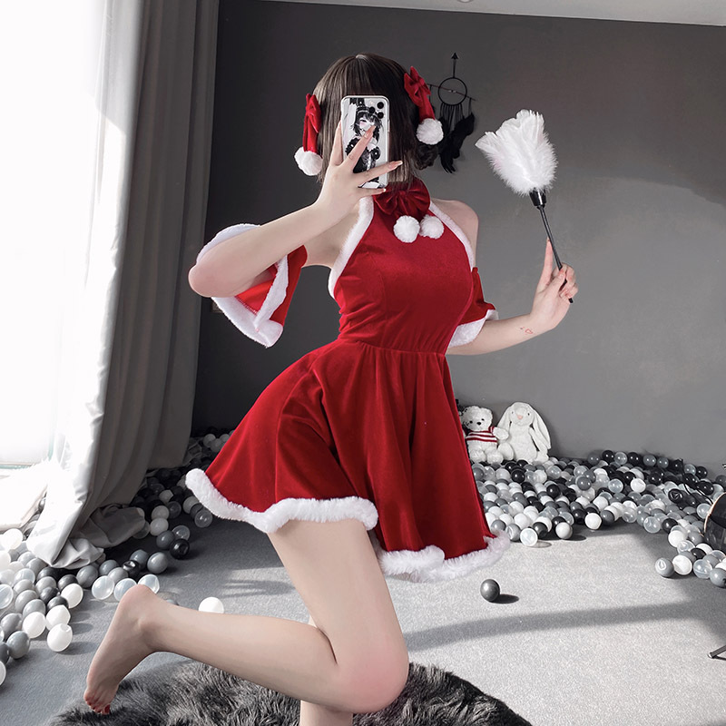 圣诞战袍套装抹胸裙女本命年性感制服连衣裙子