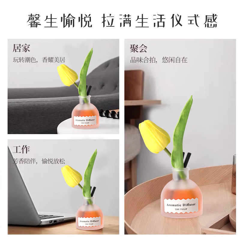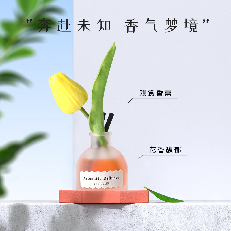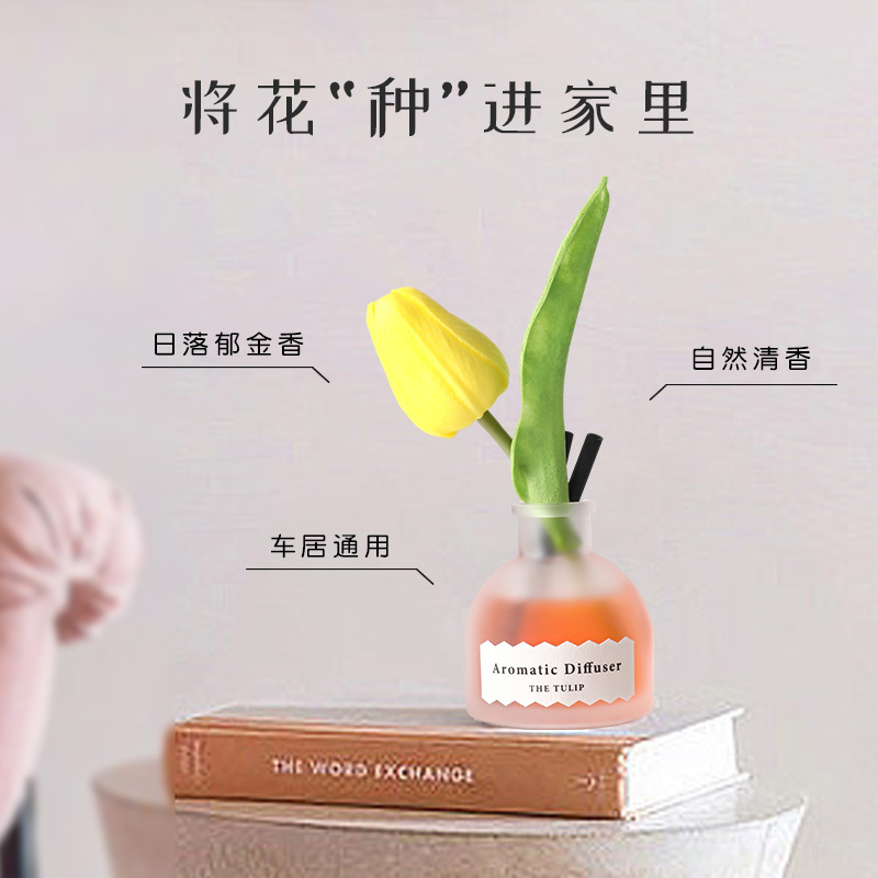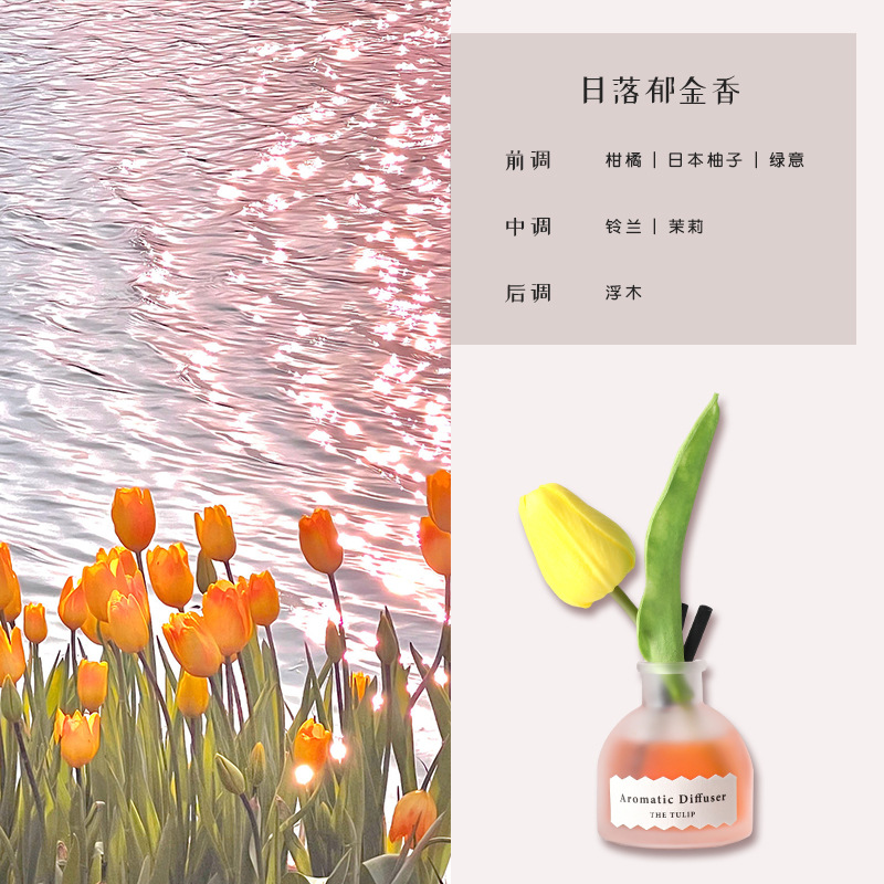 日落郁金香藤条香薰女士持久插花淡香卧室厕所摆件50ml花果香氛