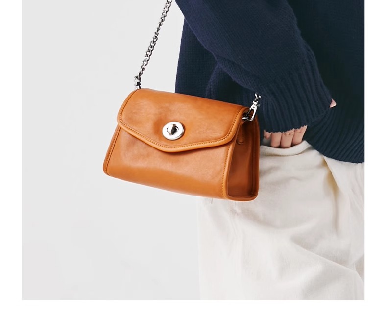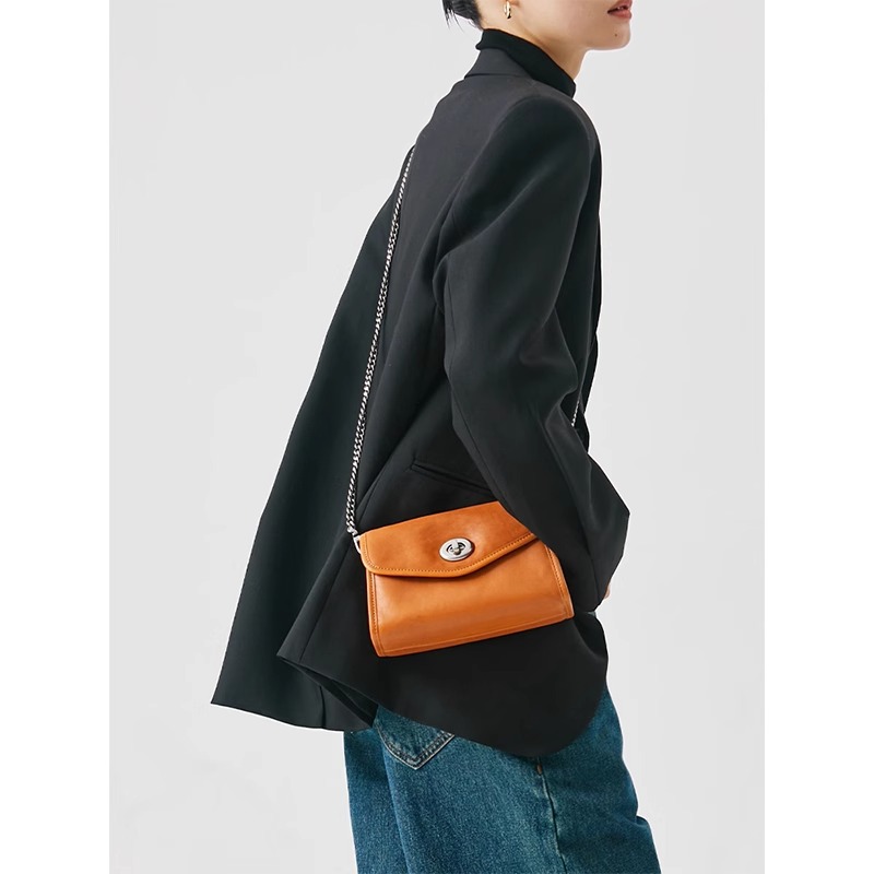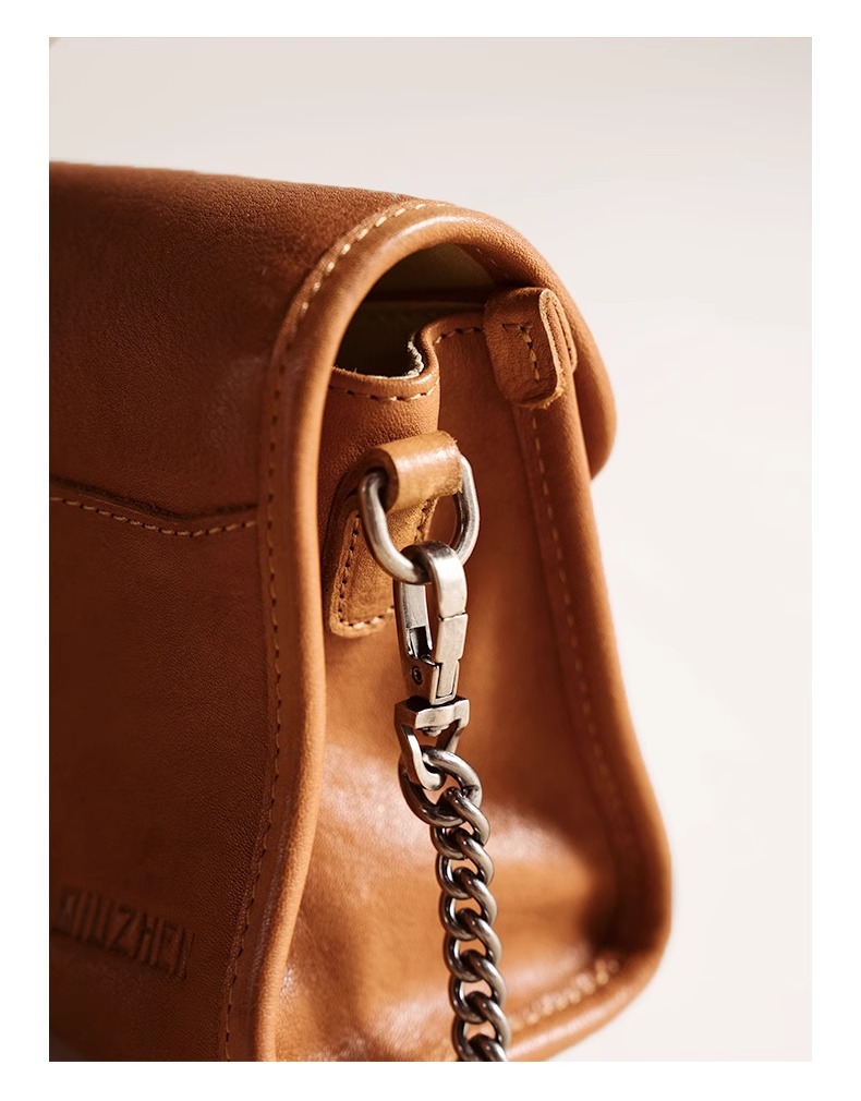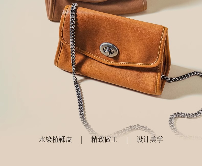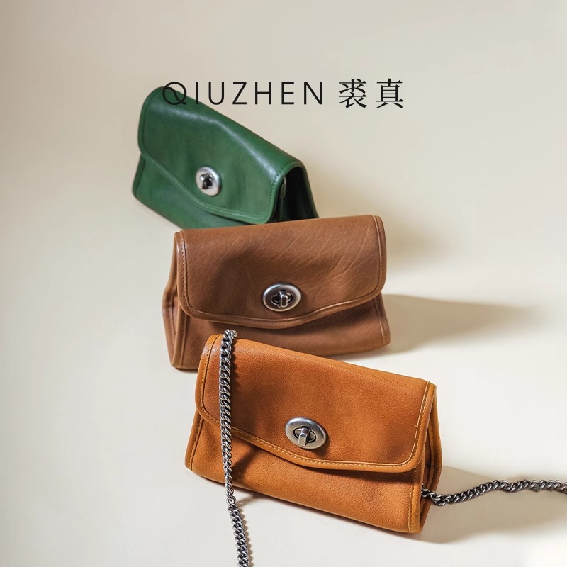裘真信封包女链条斜挎包复古真皮小包植鞣头层牛皮高级感小众包包