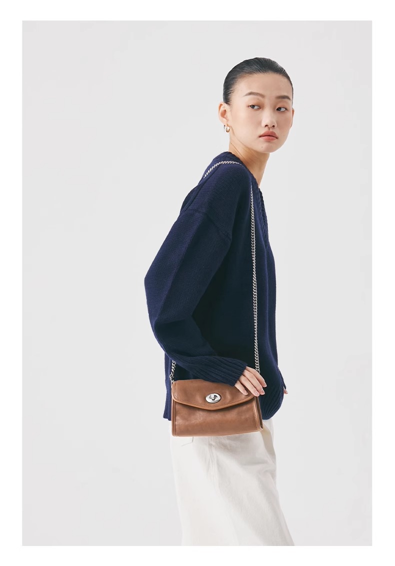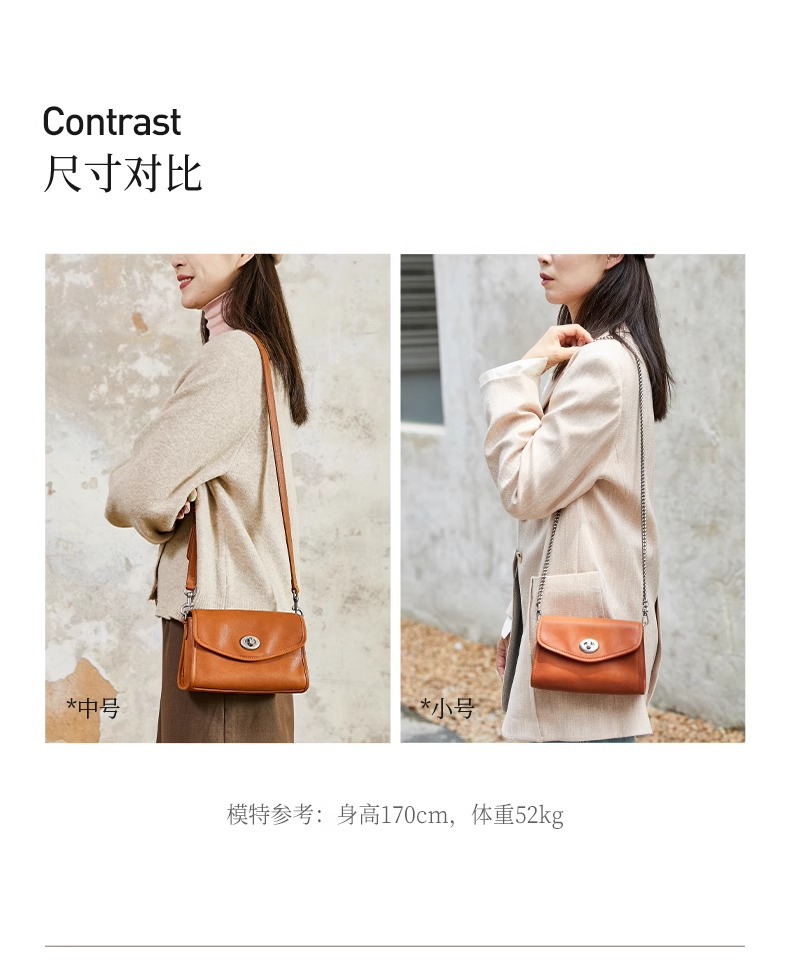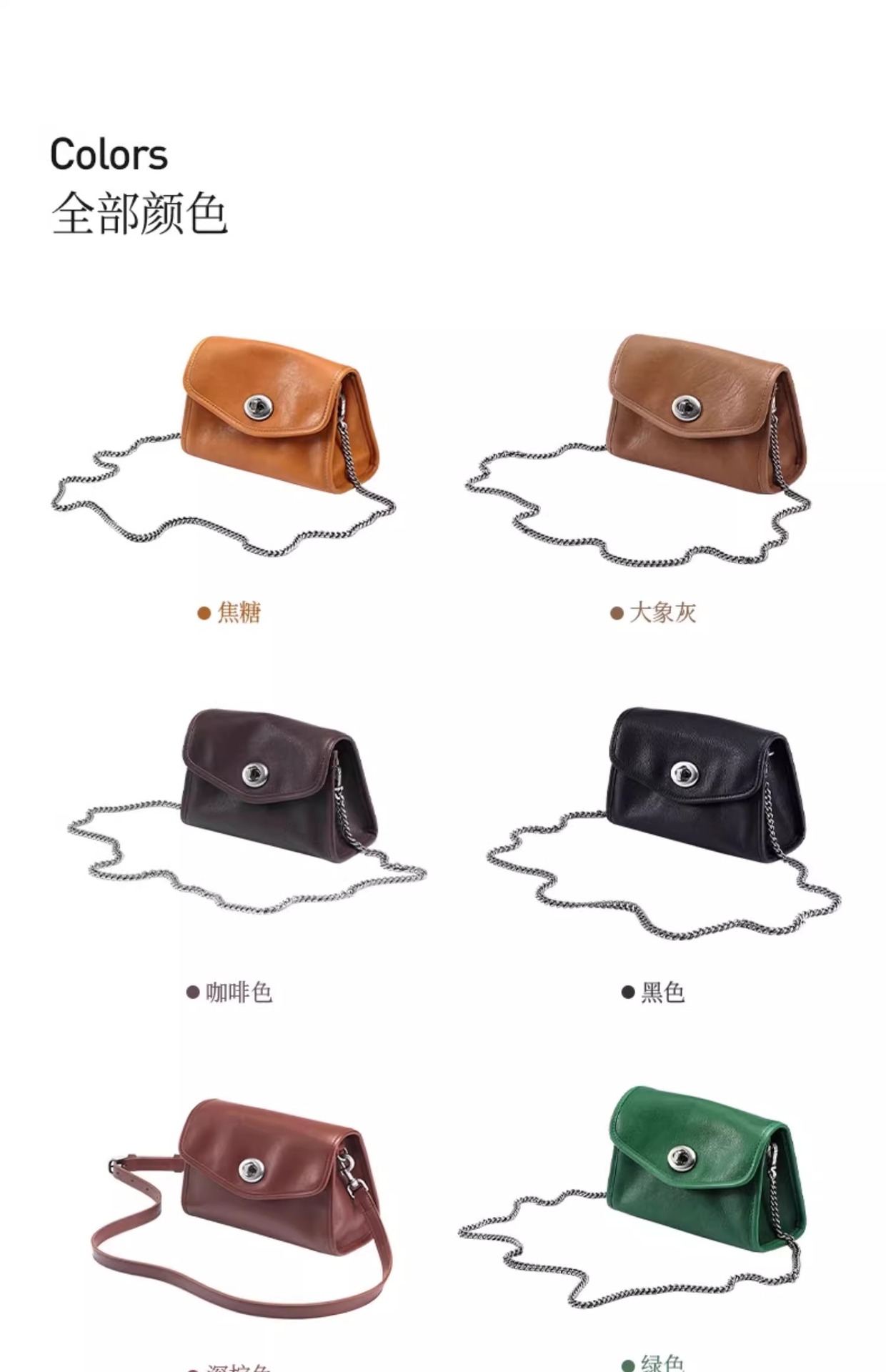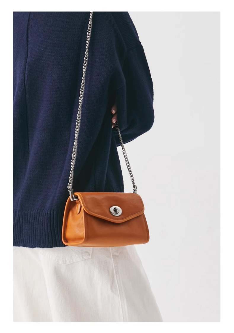 裘真信封包女链条斜挎包复古真皮小包植鞣头层牛皮高级感小众包包