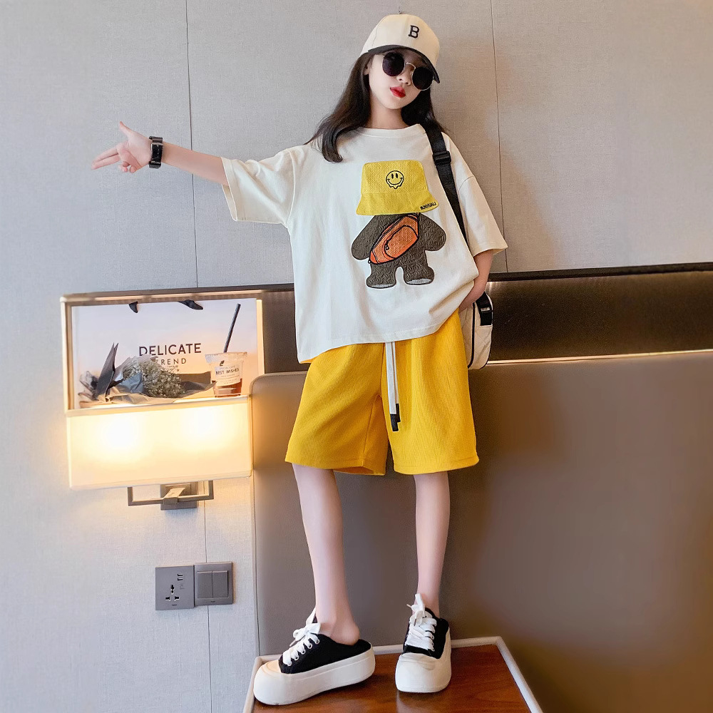童装女童夏季时髦2025新款中大童韩版洋气休闲宽松印花套装两件套