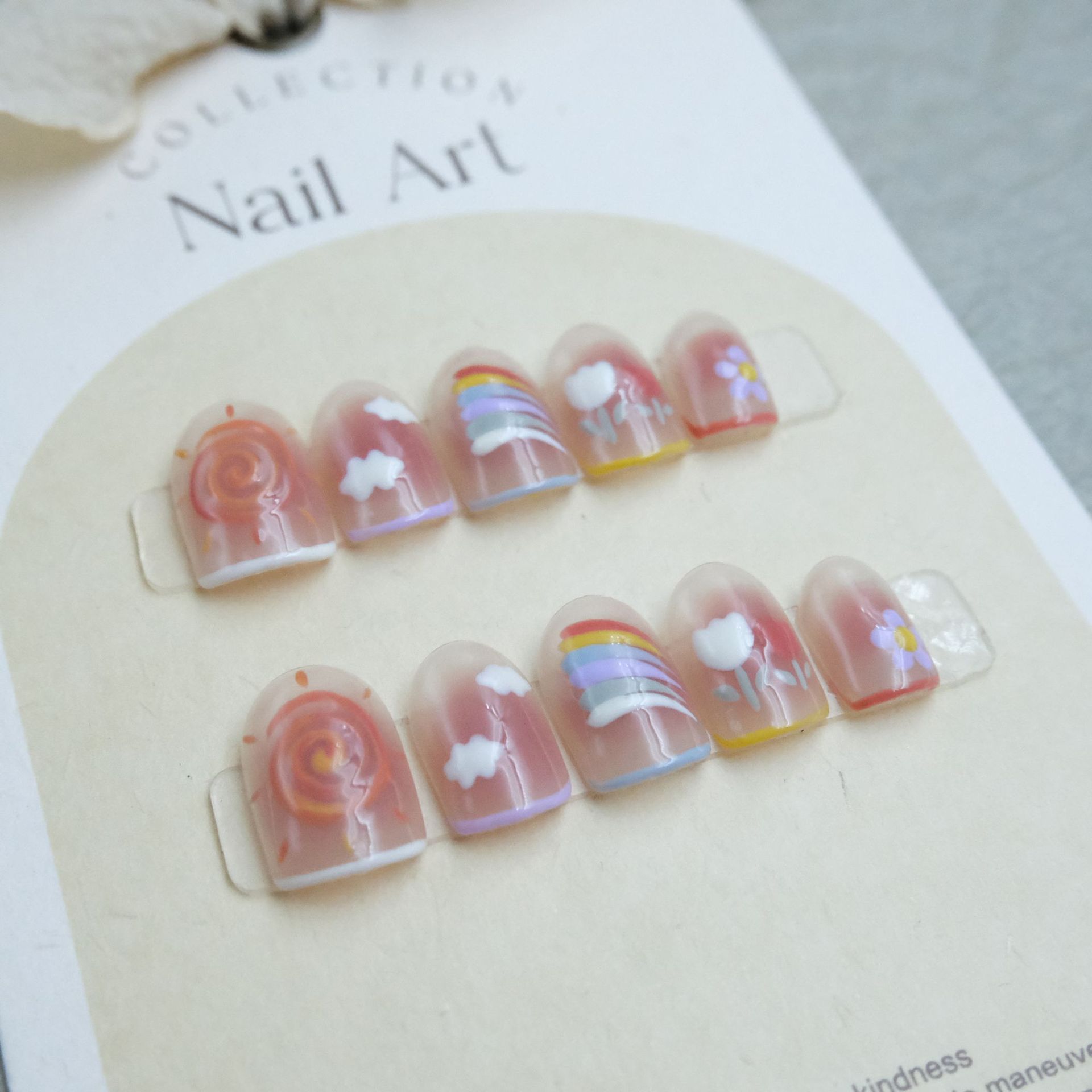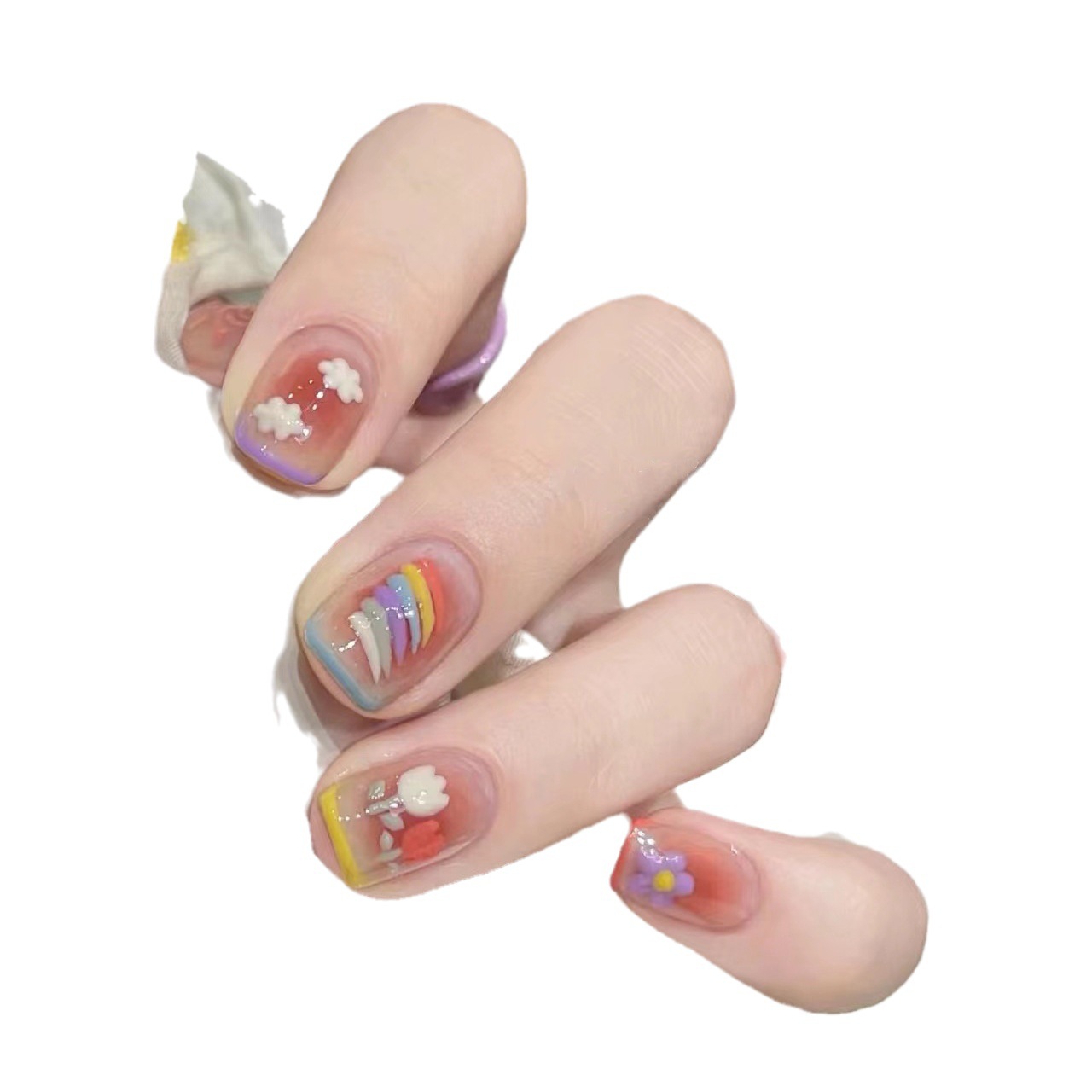 纯手工美甲穿戴甲指甲贴多巴胺ins可爱百搭彩虹郁金香小红书同款