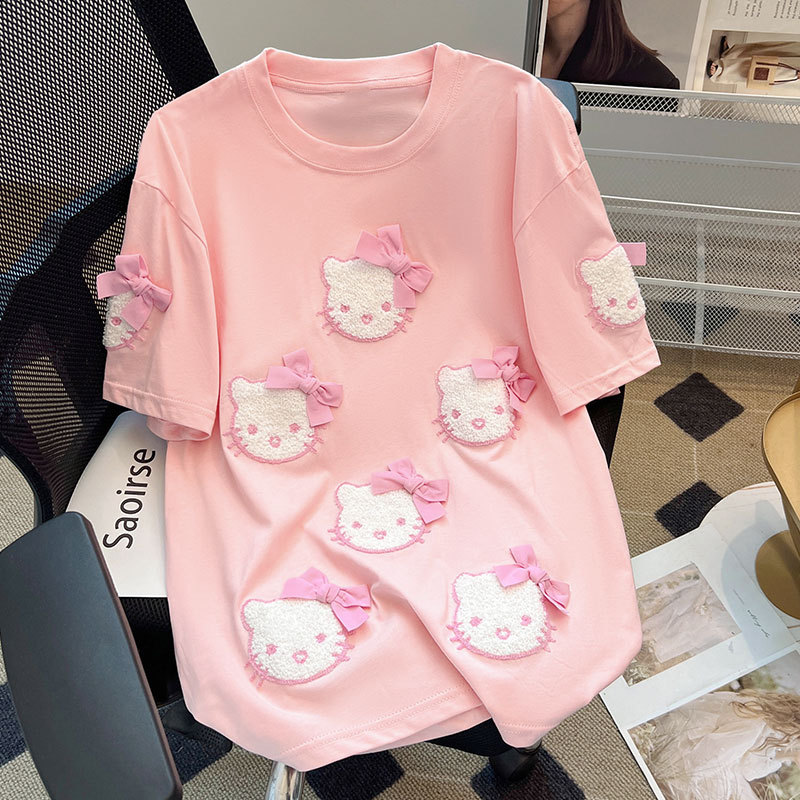 粉色kitty猫咪宽松短袖t恤女夏季2025新款设计感洋气减龄可爱上衣