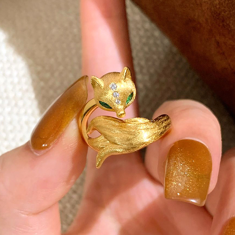 小红书爆款小狐娘戒指轻奢爆闪金色九尾狐狸拉丝立体指环
