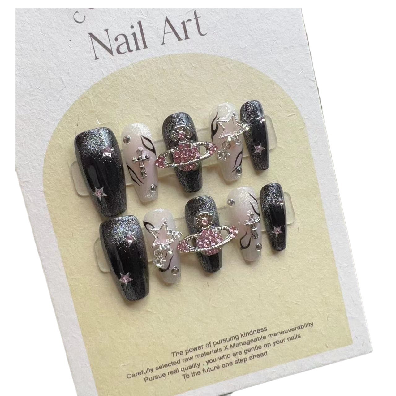 手工美甲穿戴甲假指甲贴片辣妹系列爆闪粉钻环绕星球火焰追光猫眼