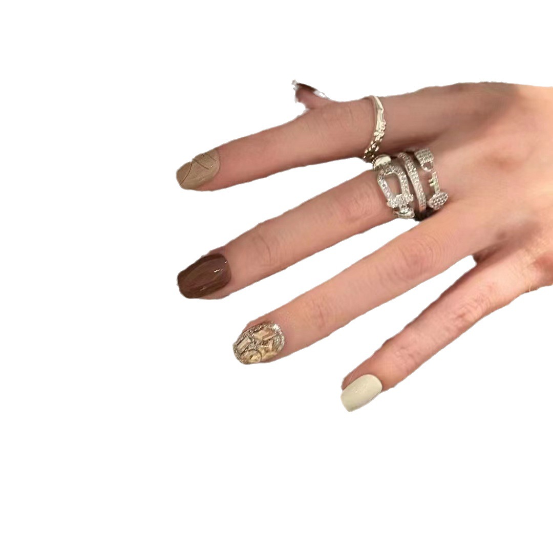 纯手工美甲穿戴甲假指甲贴片美甲成品秋冬复古焦糖色爆闪钻短甲
