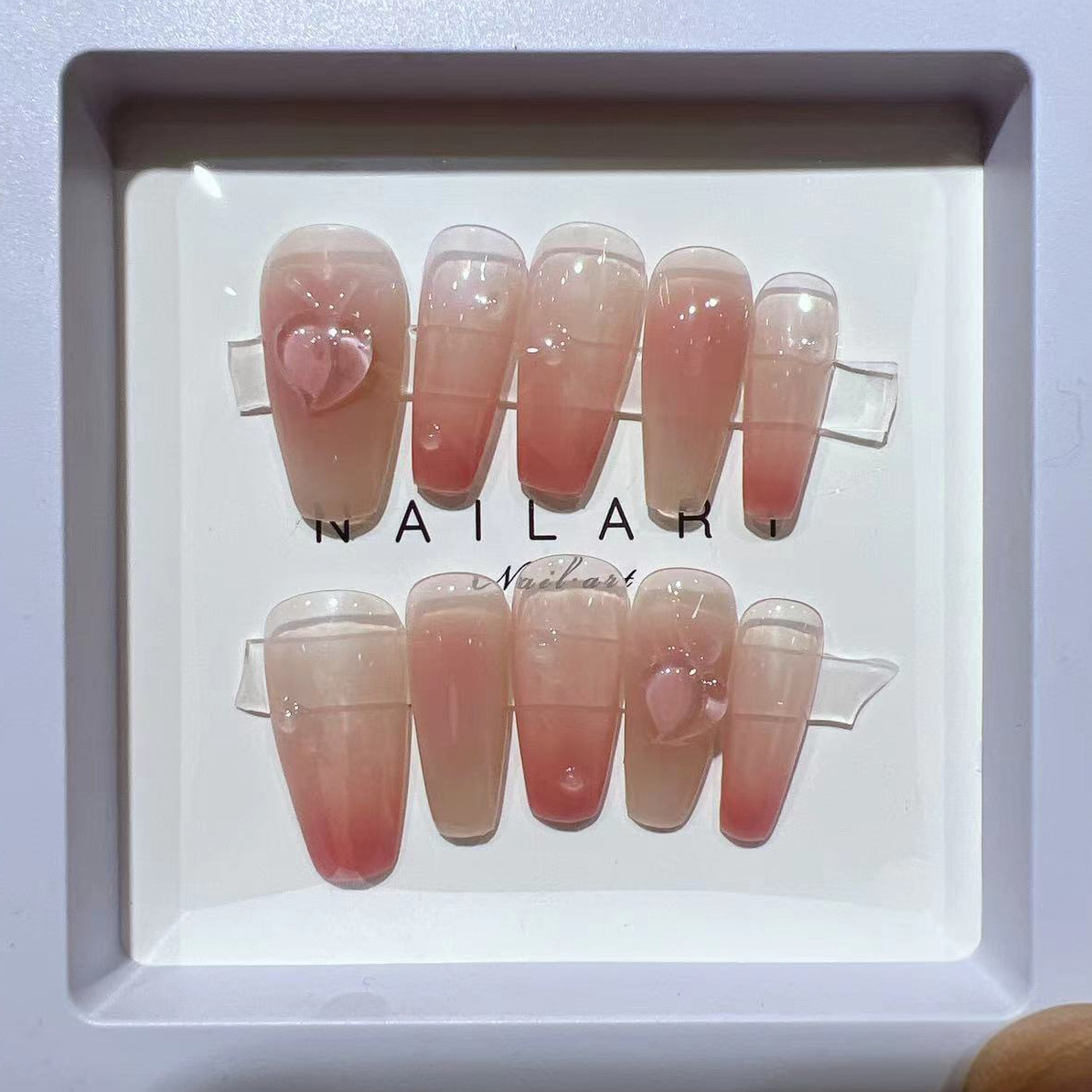 手工穿戴甲片假指甲贴片美甲贴片成品水蜜桃冰裸色渐变长款可拆卸