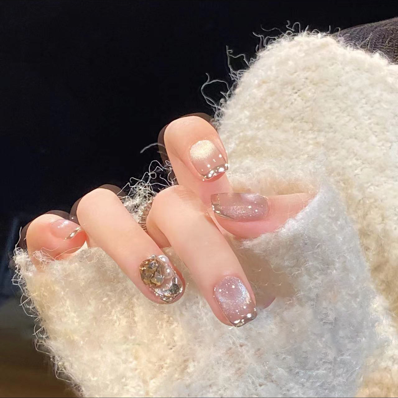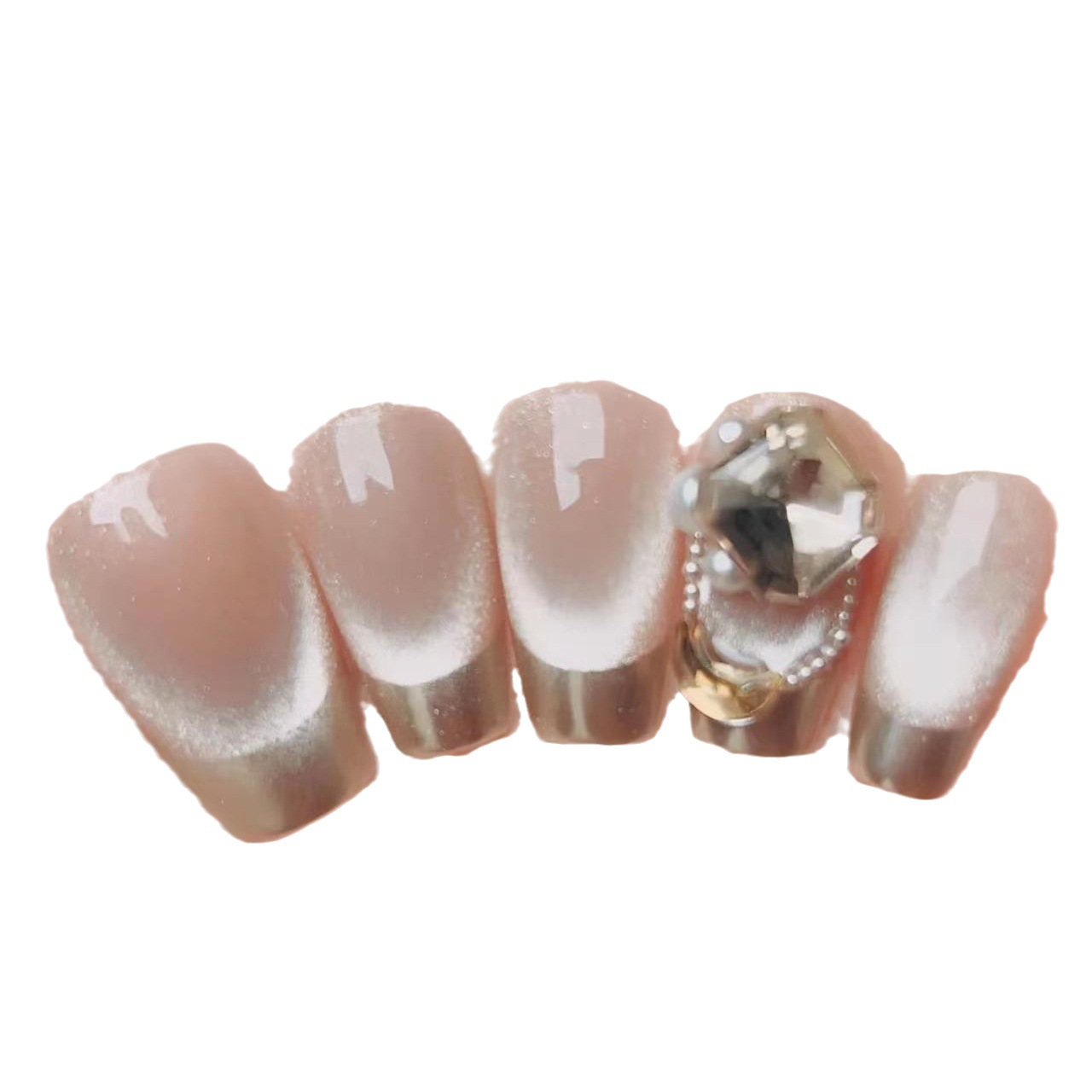 穿戴甲纯手工美甲成品假指甲贴片梦巴黎秋冬显白裸色猫眼魔镜法式
