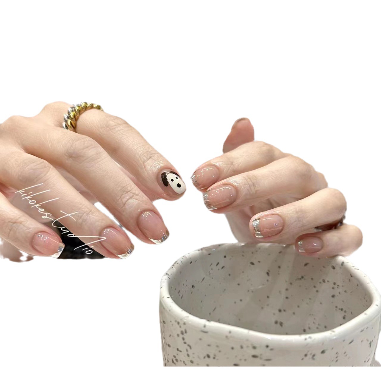 穿戴甲纯手工美甲成品假指甲贴片可爱卡通哈巴狗魔镜法式显白裸色