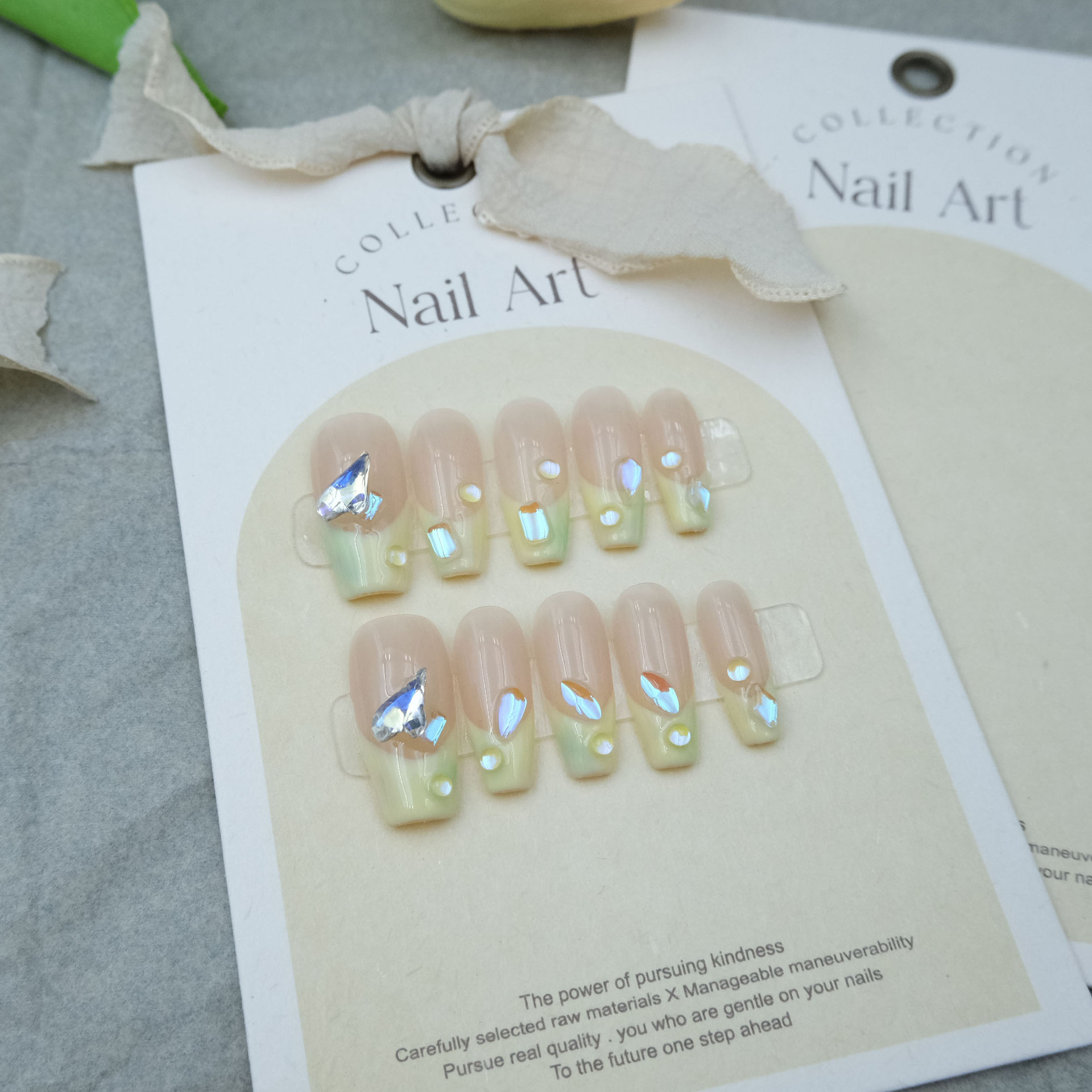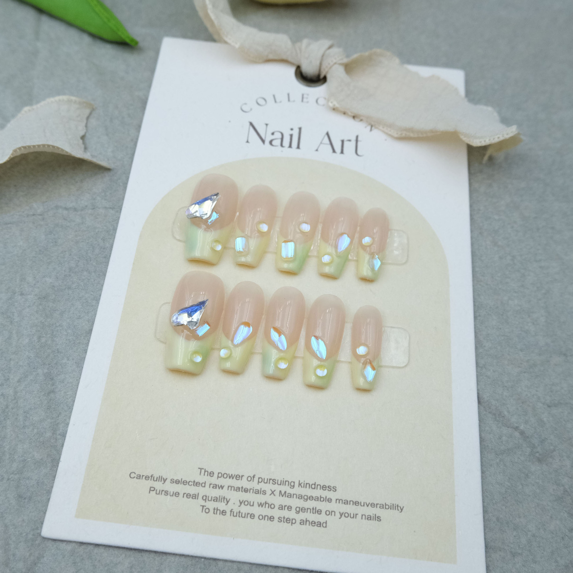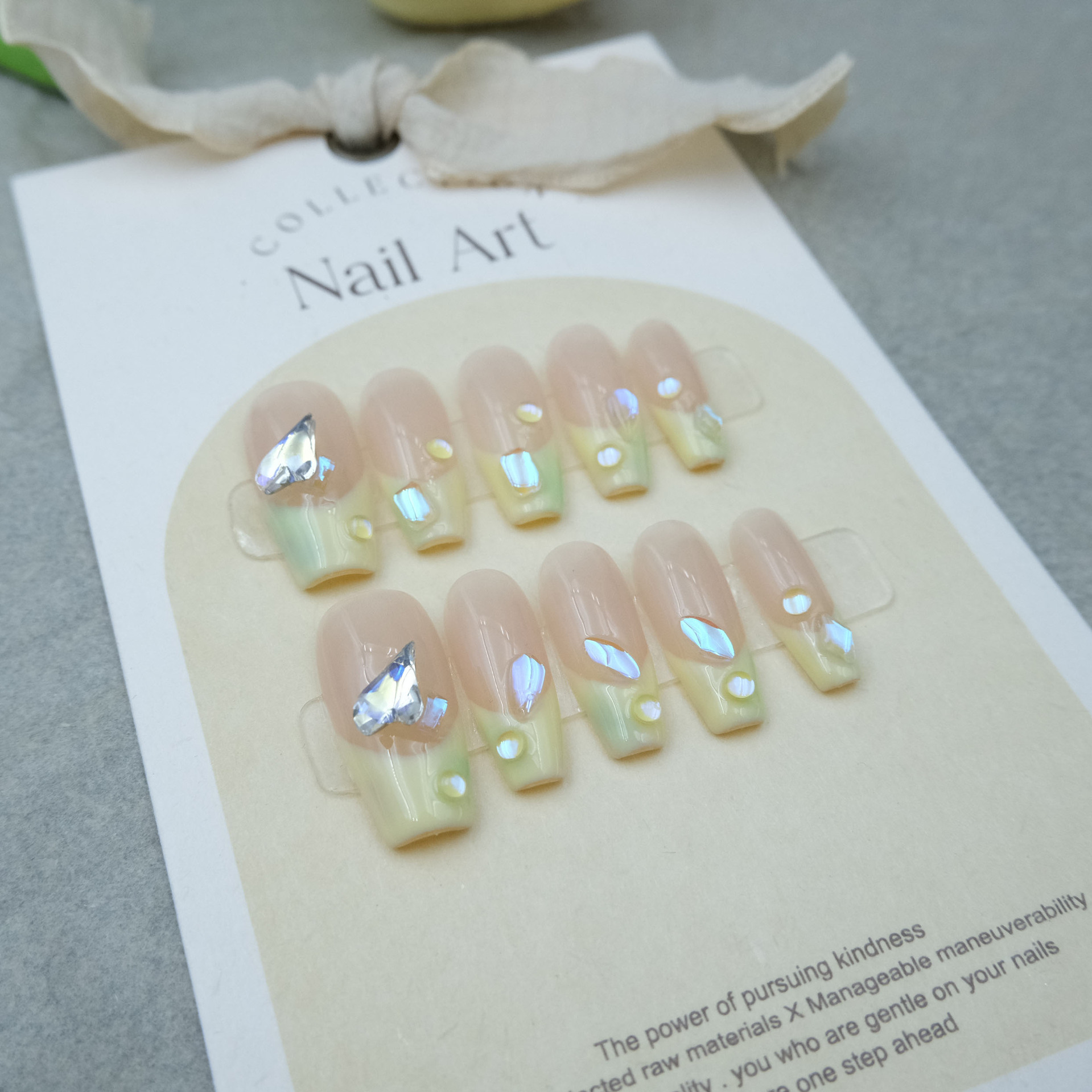 手工美甲穿戴甲指甲贴奶黄色法式泡泡珠极光爆闪钻气质小红书同款