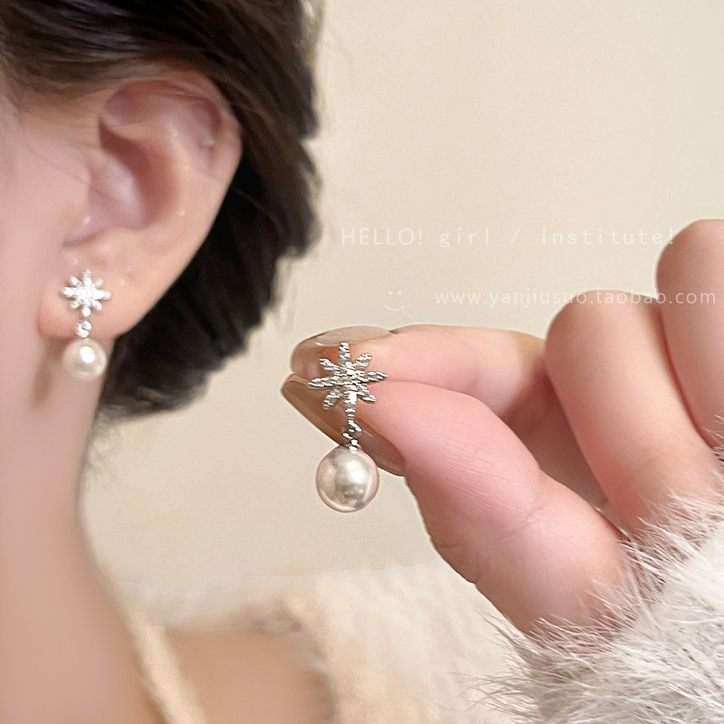 八芒星雪花珍珠耳钉新款爆款秋冬独特耳环女小巧精致通勤耳饰