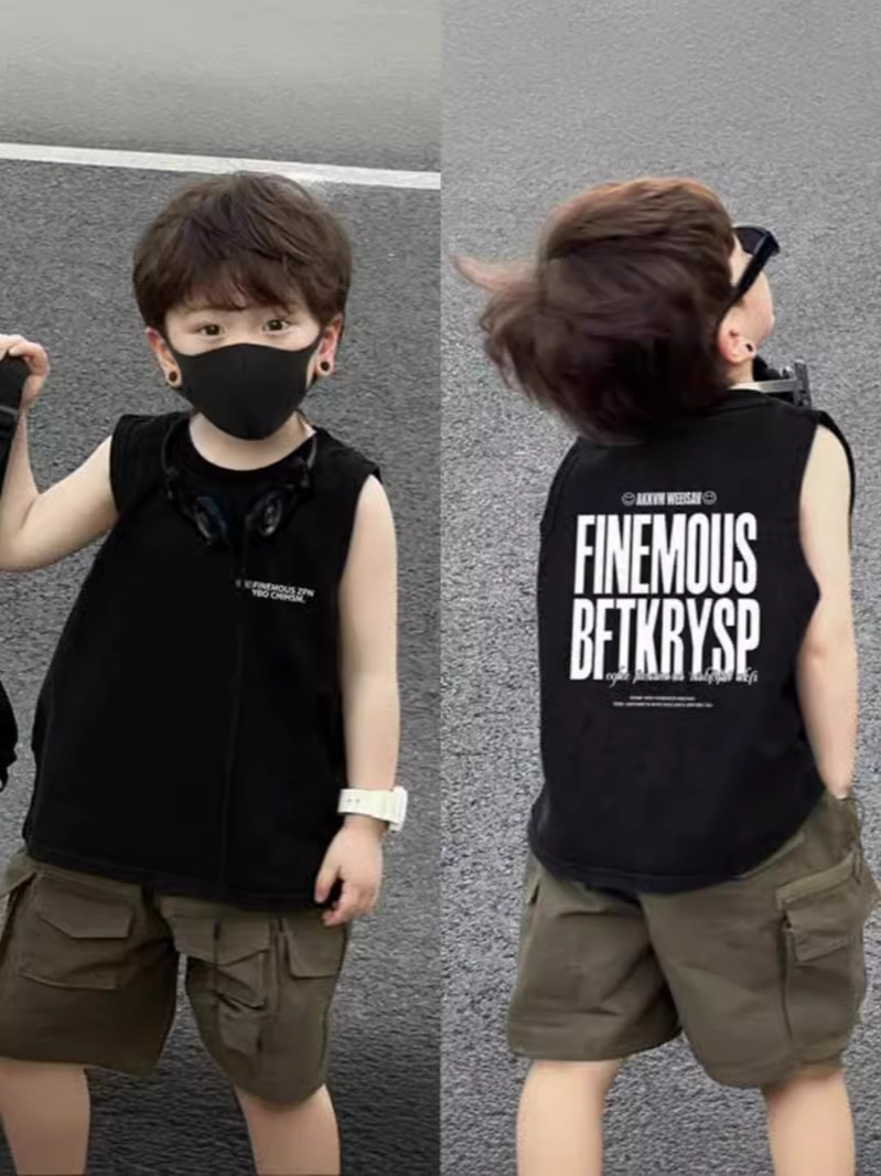 儿童潮流印花童装短袖T恤男童夏季新款儿童透气中小童无袖T恤