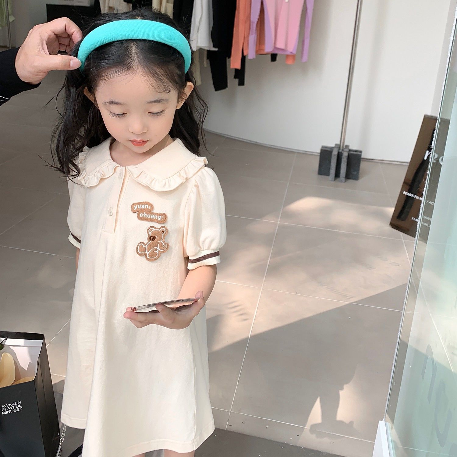 女童连衣裙夏季新款小女孩洋气娃娃领泡泡袖裙小熊裙子1150