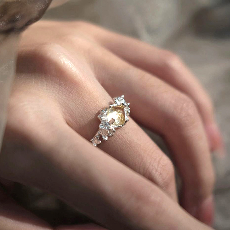 小红书爆款棉花糖黄水晶戒指女时尚轻奢秋冬搭配彩宝指环