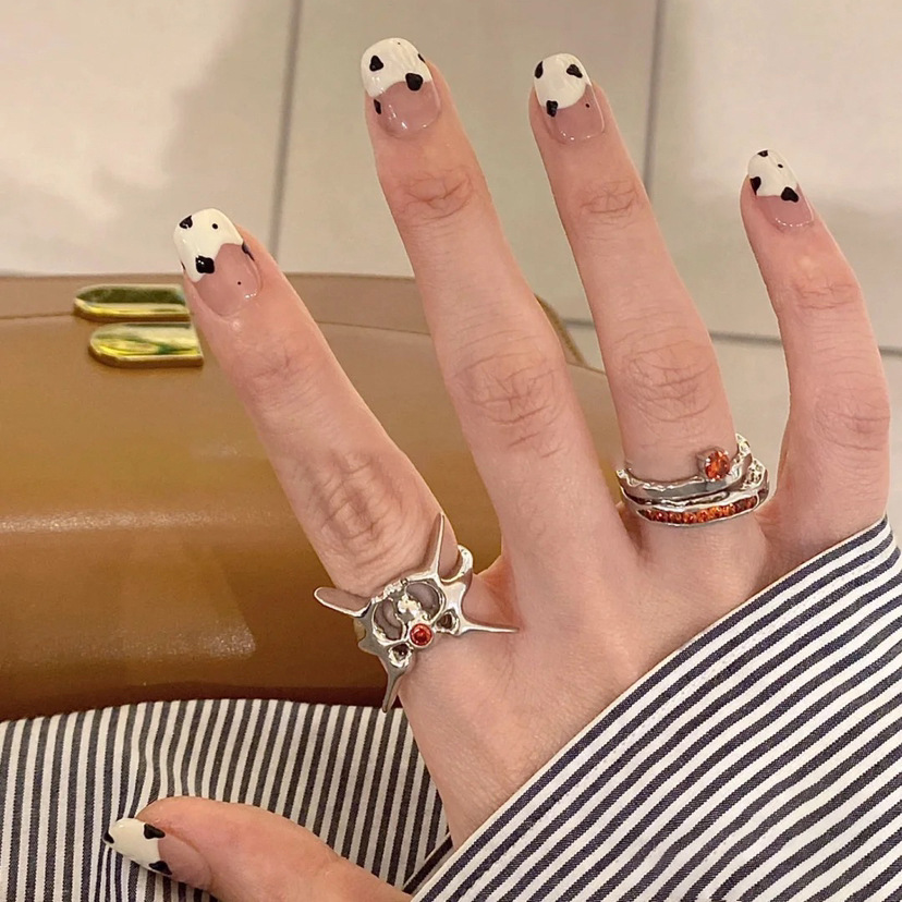 纯手工美甲穿戴甲指甲贴可爱奶牛纹手绘文艺熊猫美甲小红书爆款