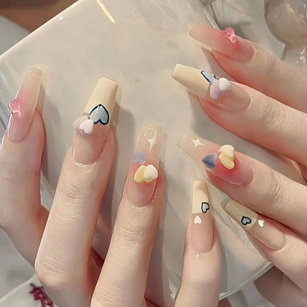 手工穿戴甲春夏四季新款纯欲甜味奶油黄涂鸦撞色爱心小红书同款