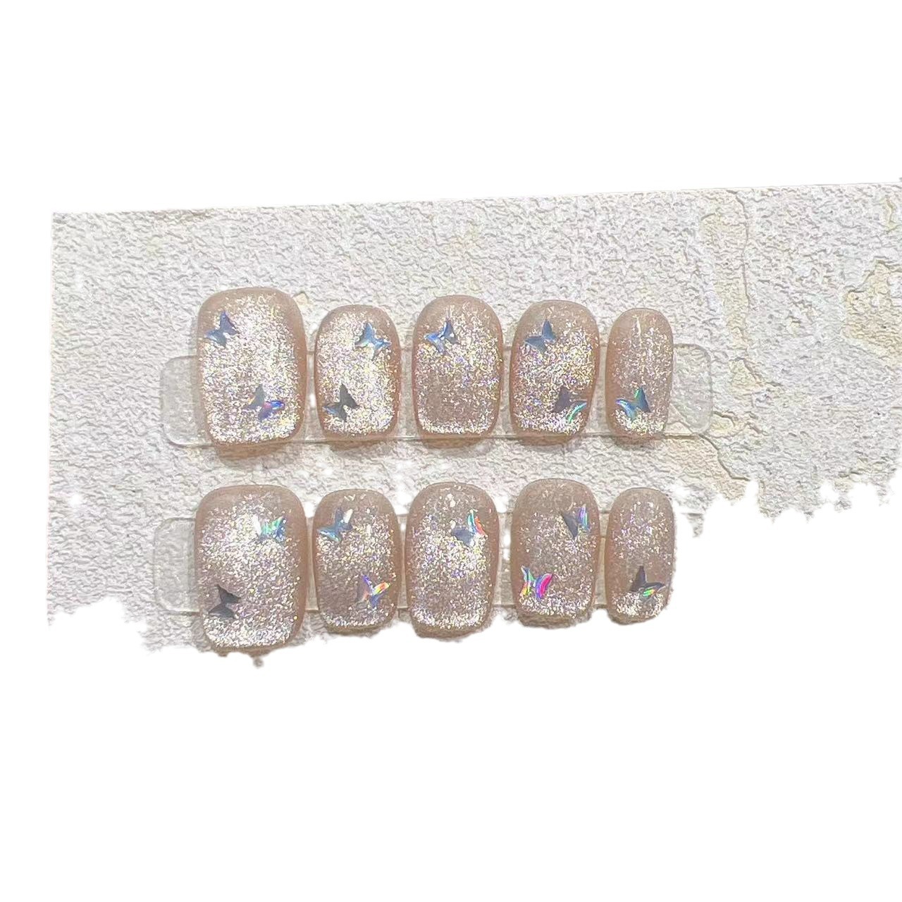 实拍穿戴甲手工美甲成品假指甲贴片裸色猫眼蝴蝶穿戴甲