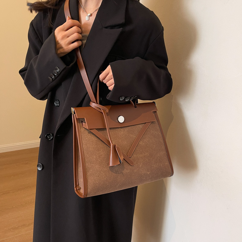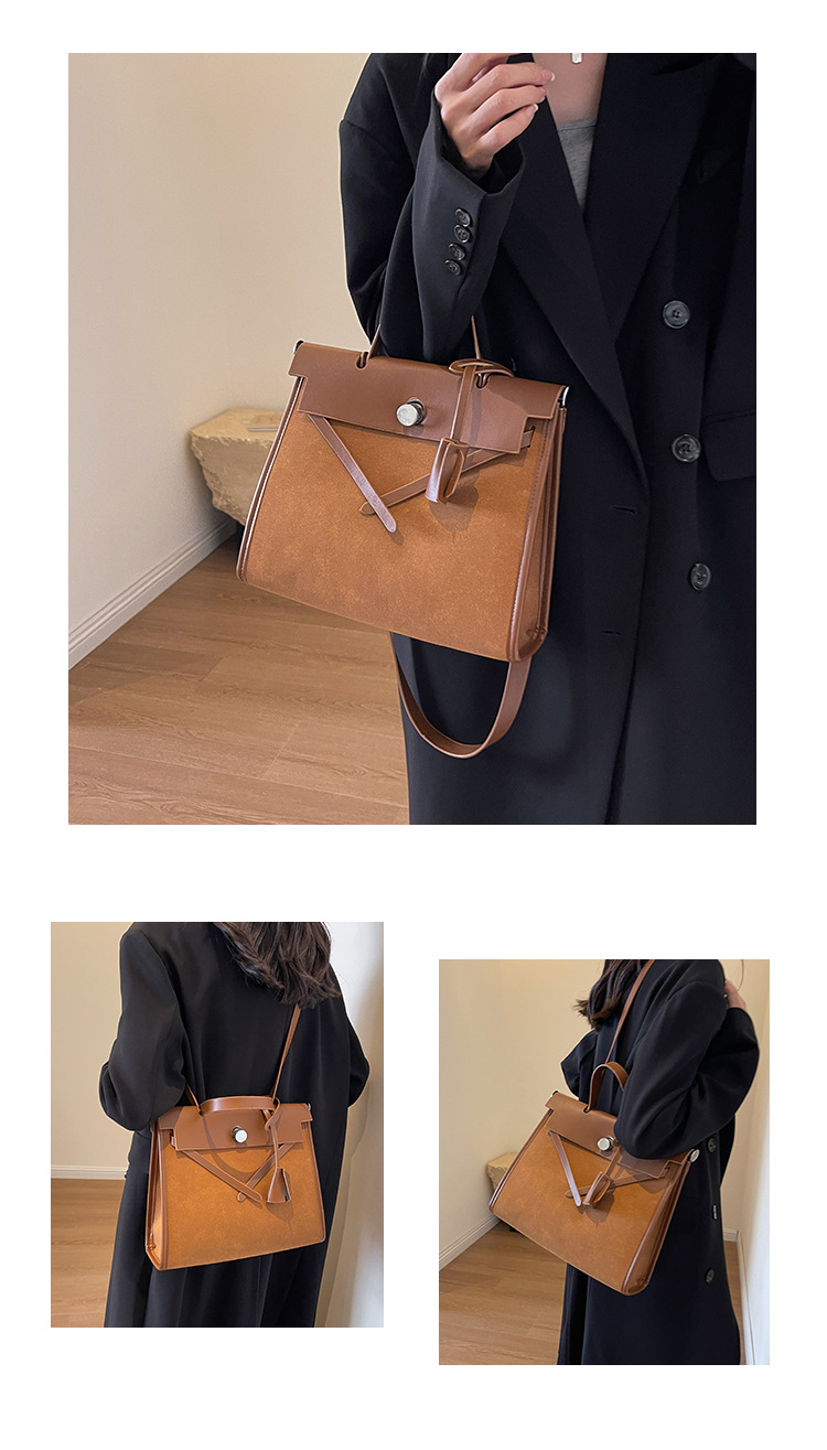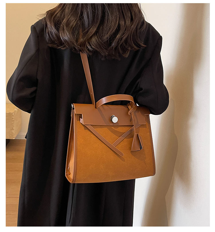 跨境麂皮绒手提凯莉包新款美拉德秋冬高级感单肩斜挎包包女包
