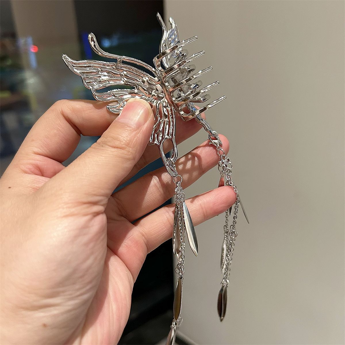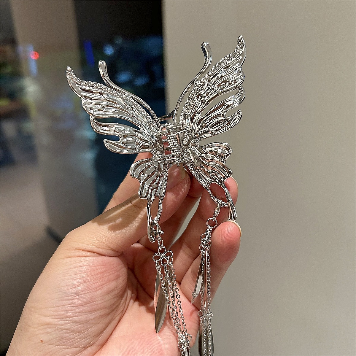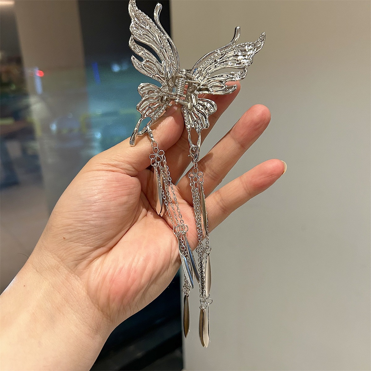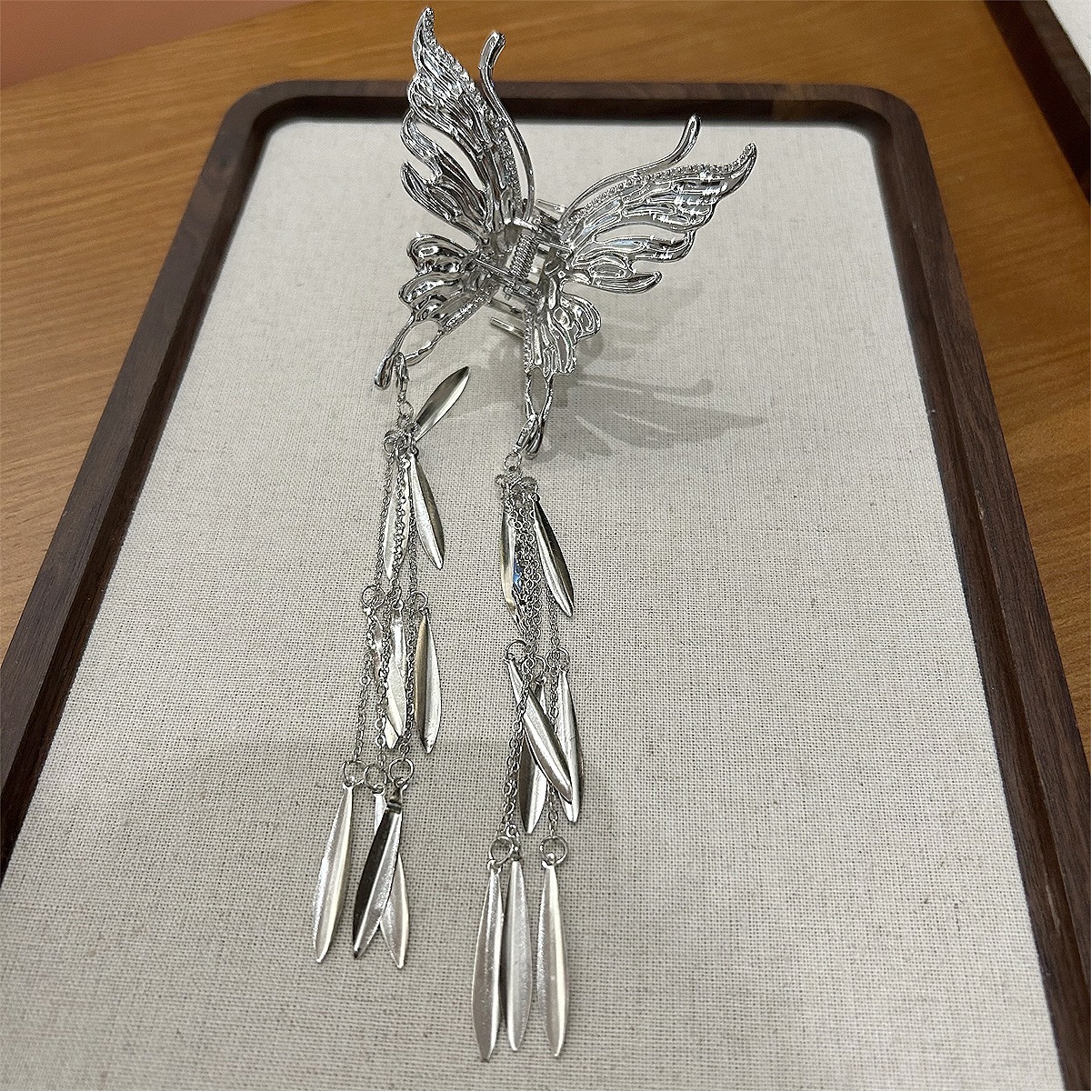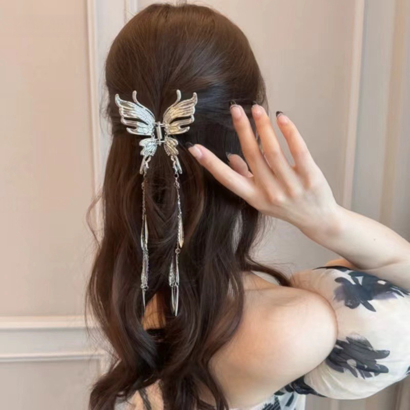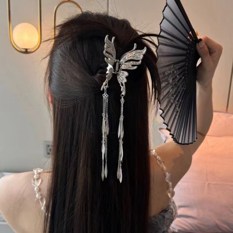 新中式蝴蝶金属流苏发夹气质时尚后脑勺盘发鲨鱼夹小众冷淡风发饰
