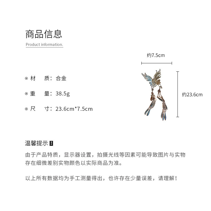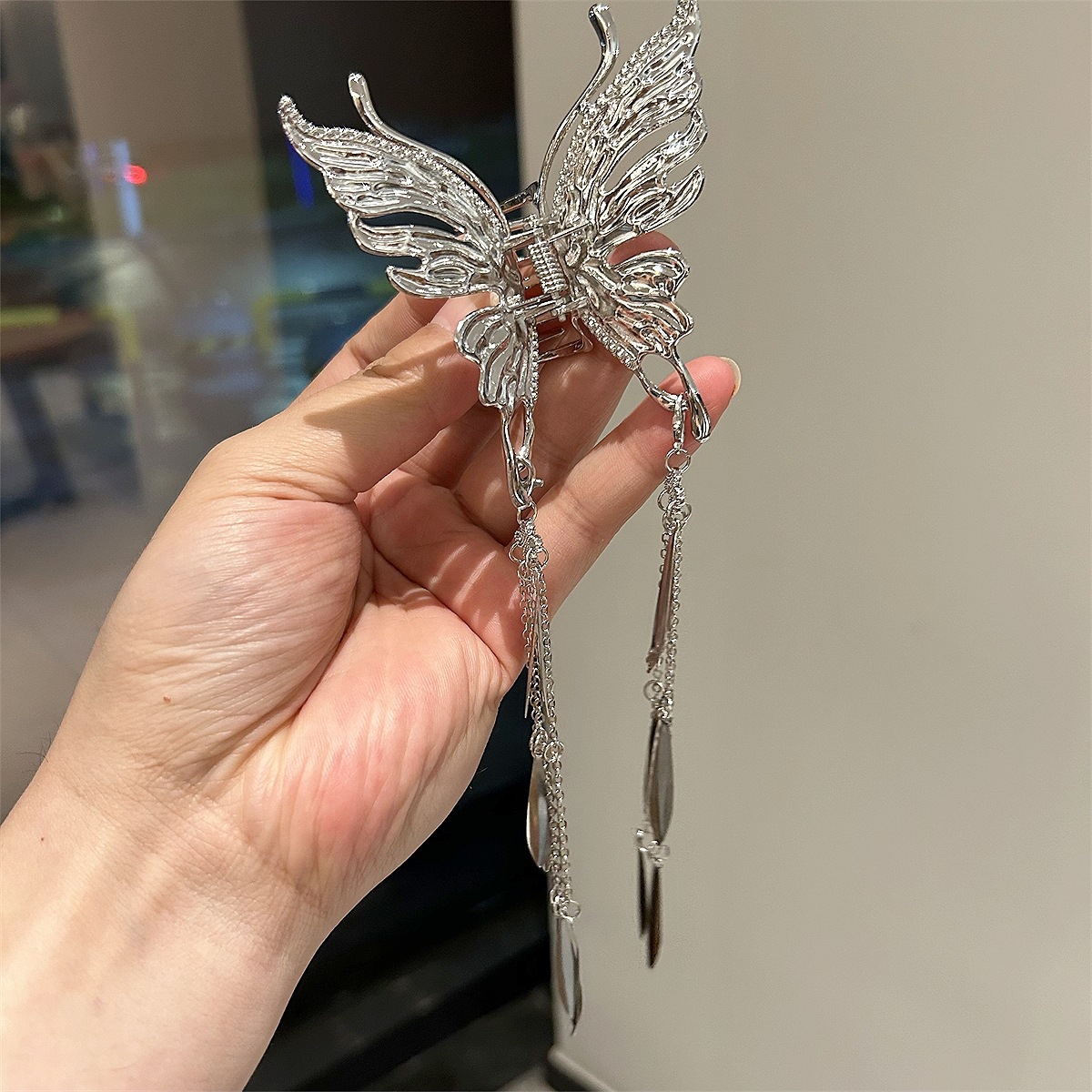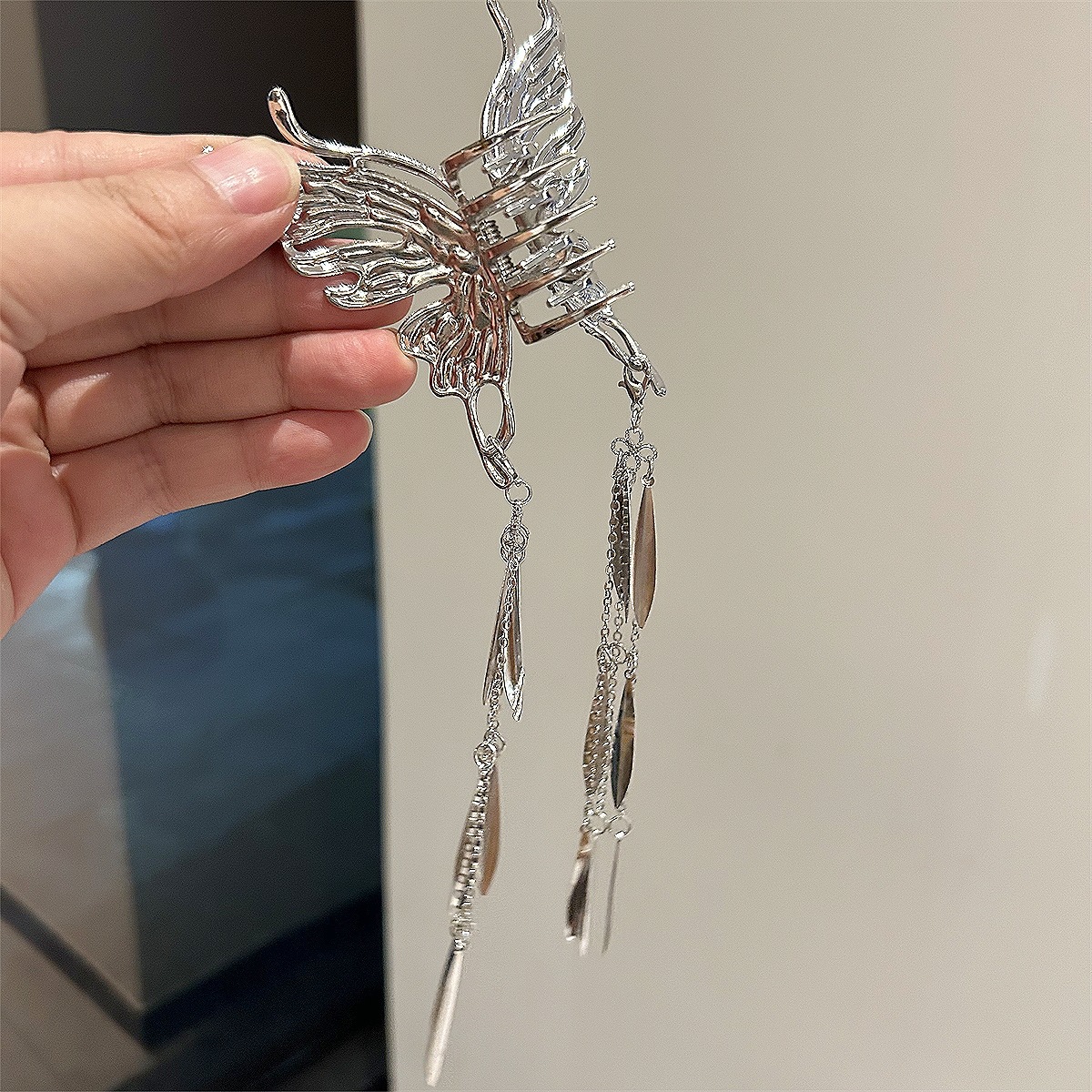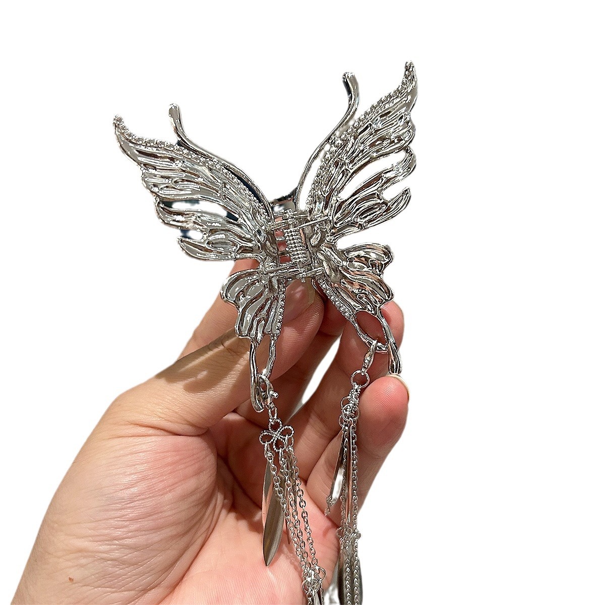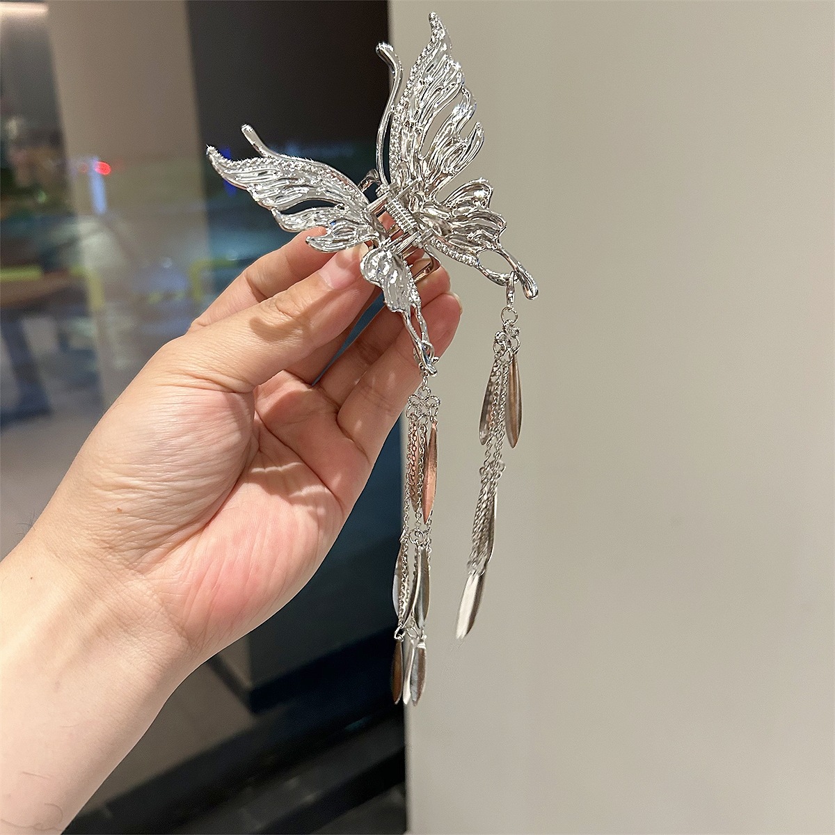 新中式蝴蝶金属流苏发夹气质时尚后脑勺盘发鲨鱼夹小众冷淡风发饰