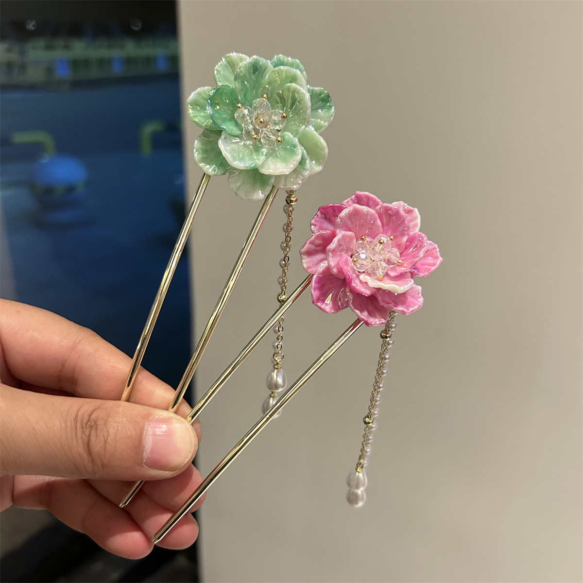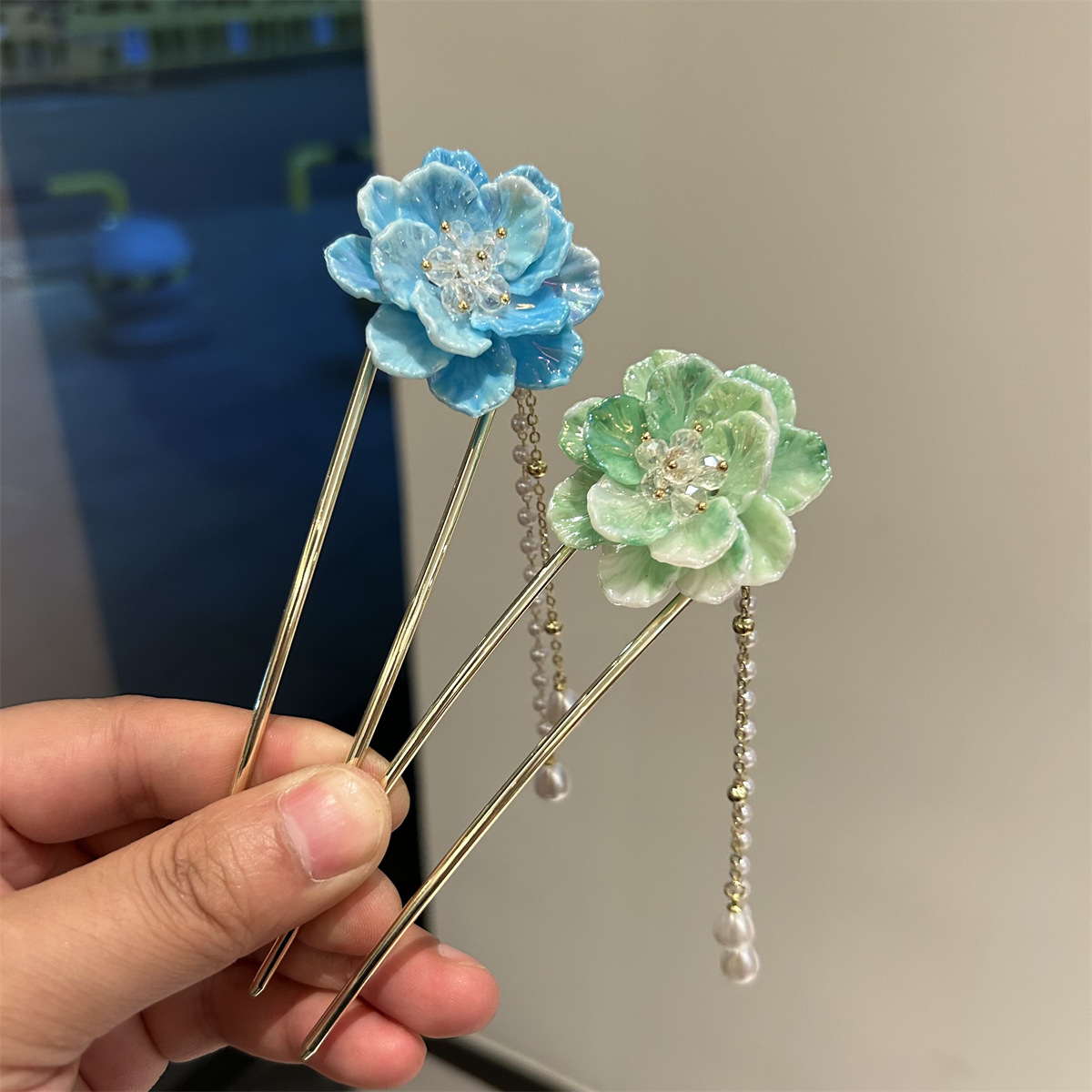 超仙气质花朵流苏发簪女现代简约簪子古风步摇发钗子u型发卡 发夹