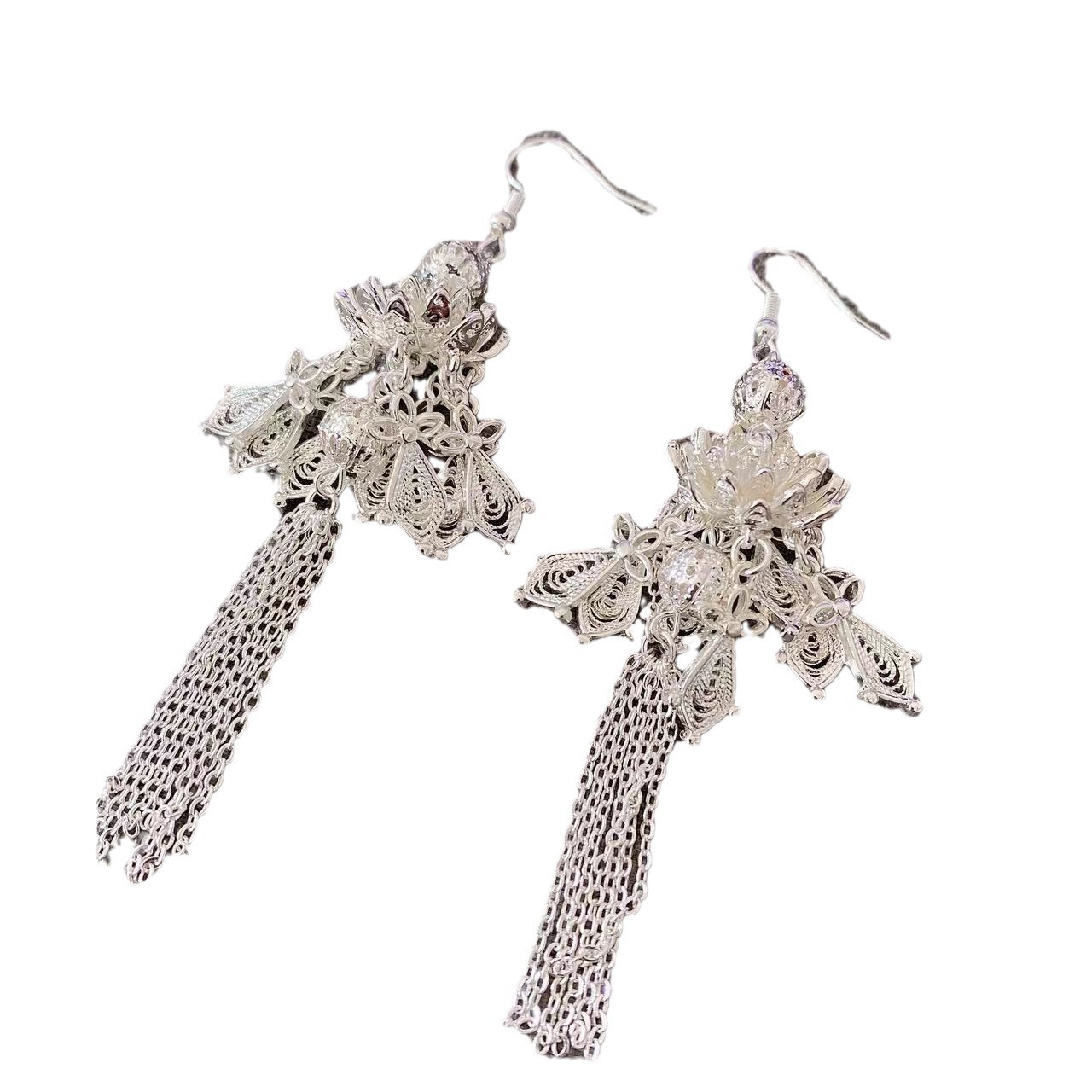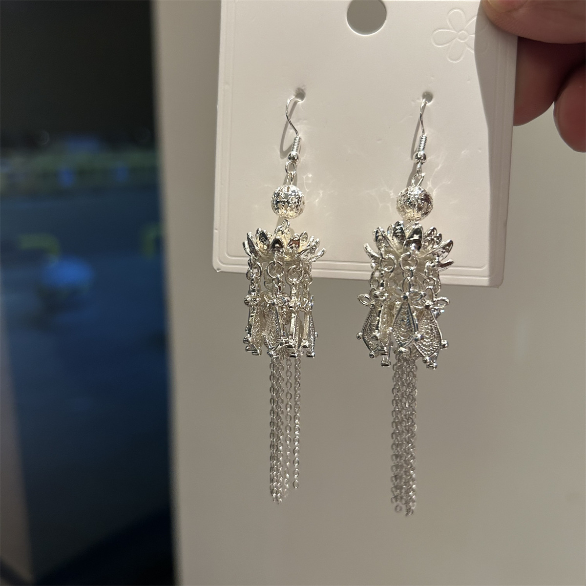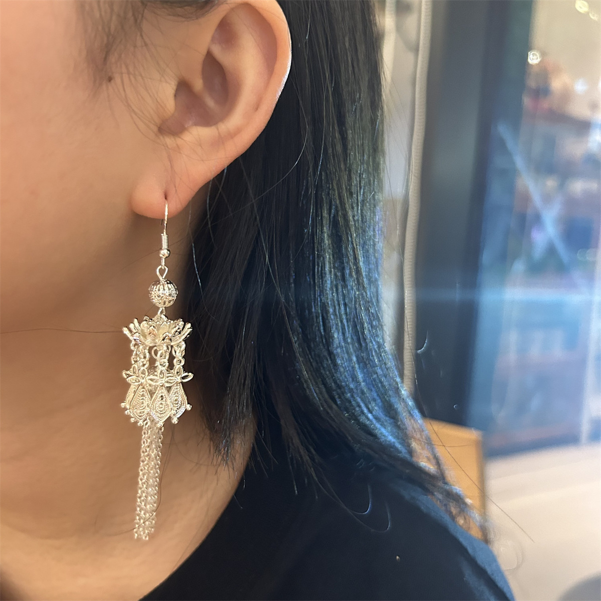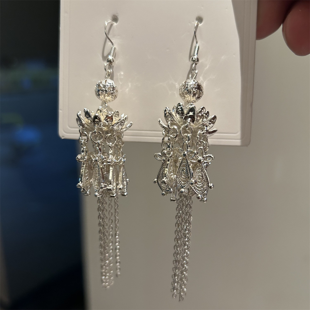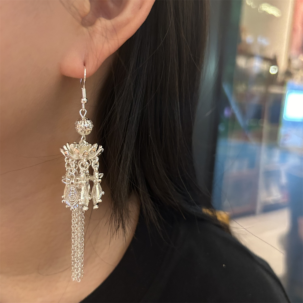 步步生莲花耳环长流苏古风汉服宫廷风耳坠气质中式婚礼耳饰耳夹