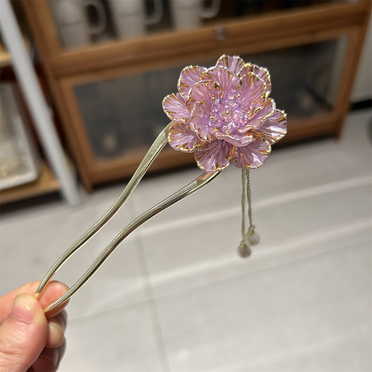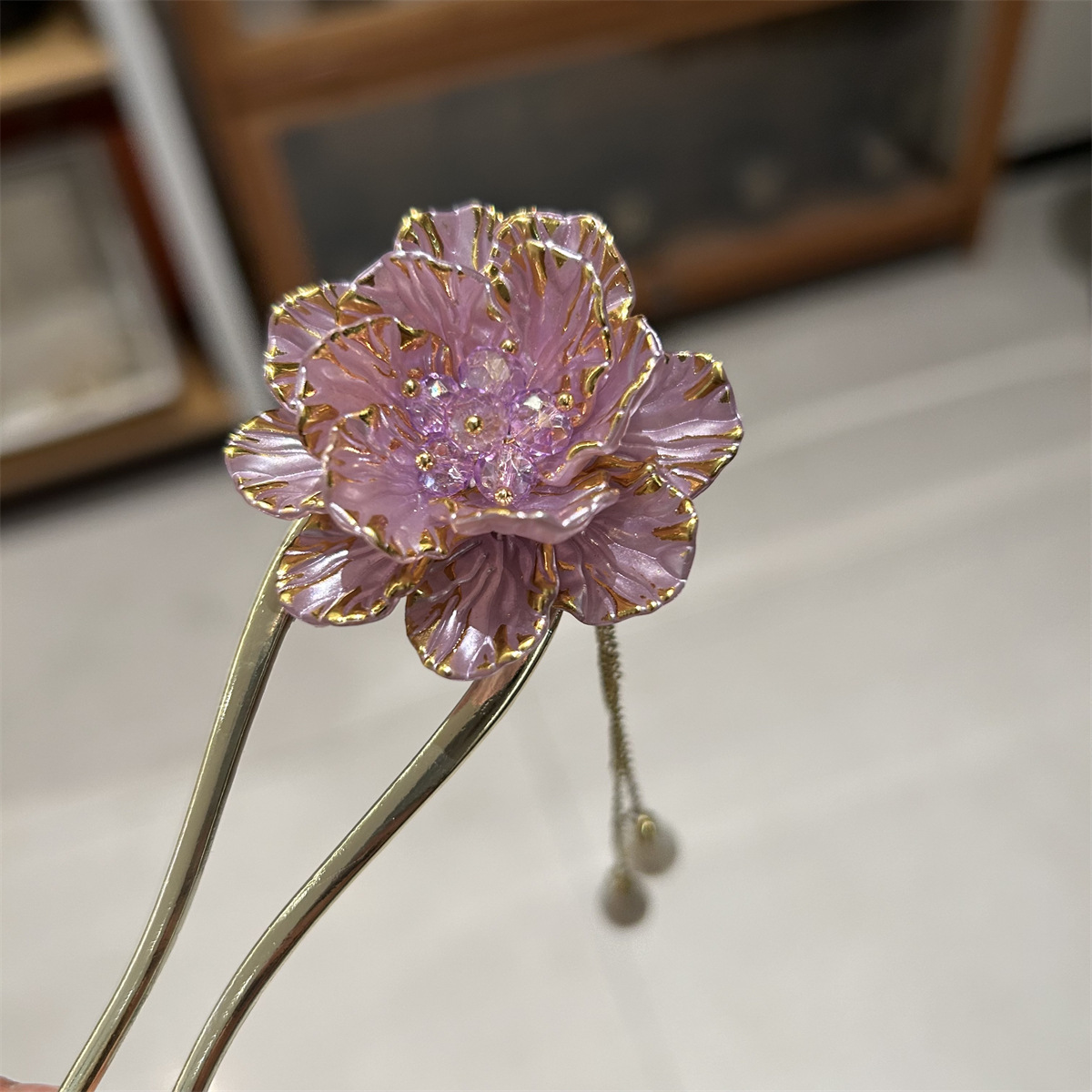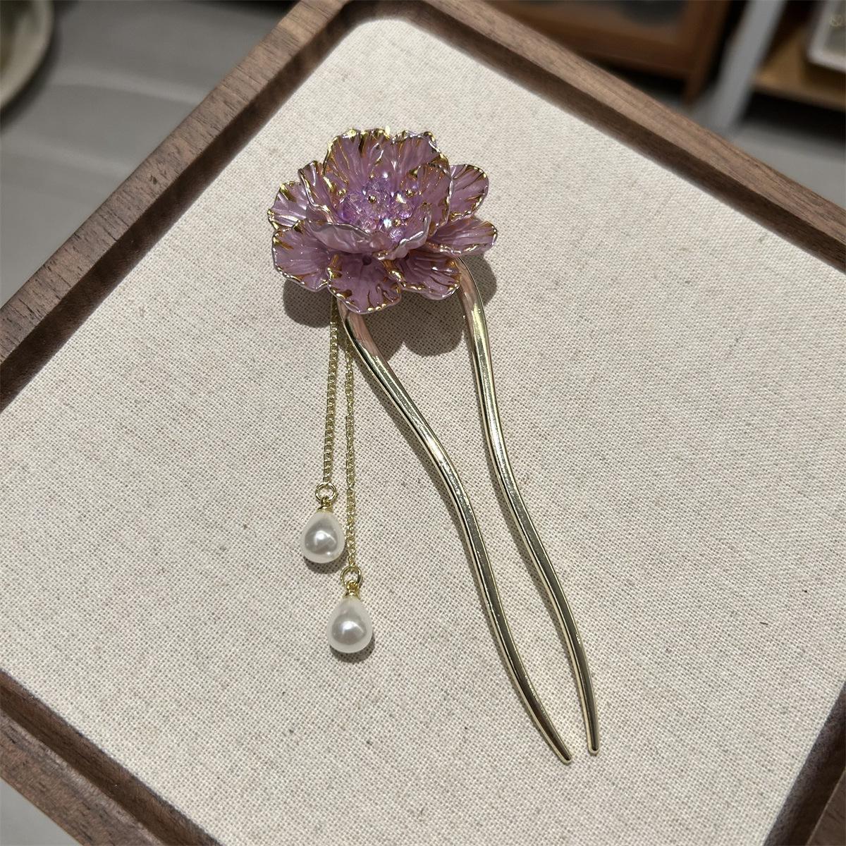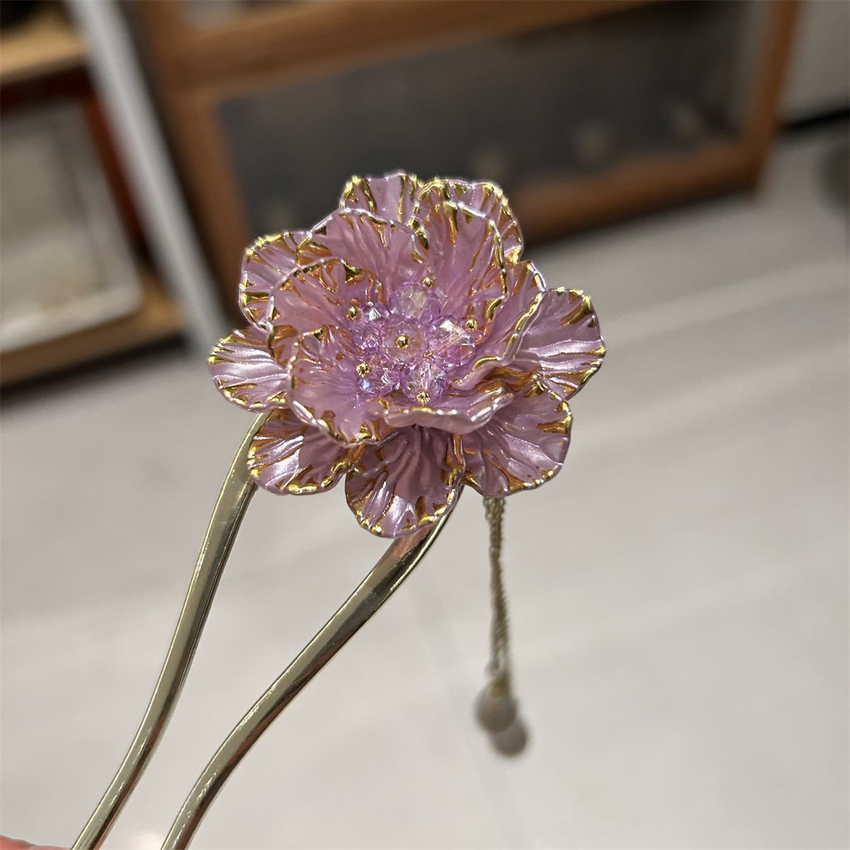 复古珐琅彩国风牡丹花发簪新中式古风高级感气质发饰发钗簪子