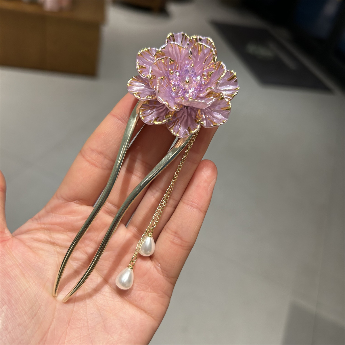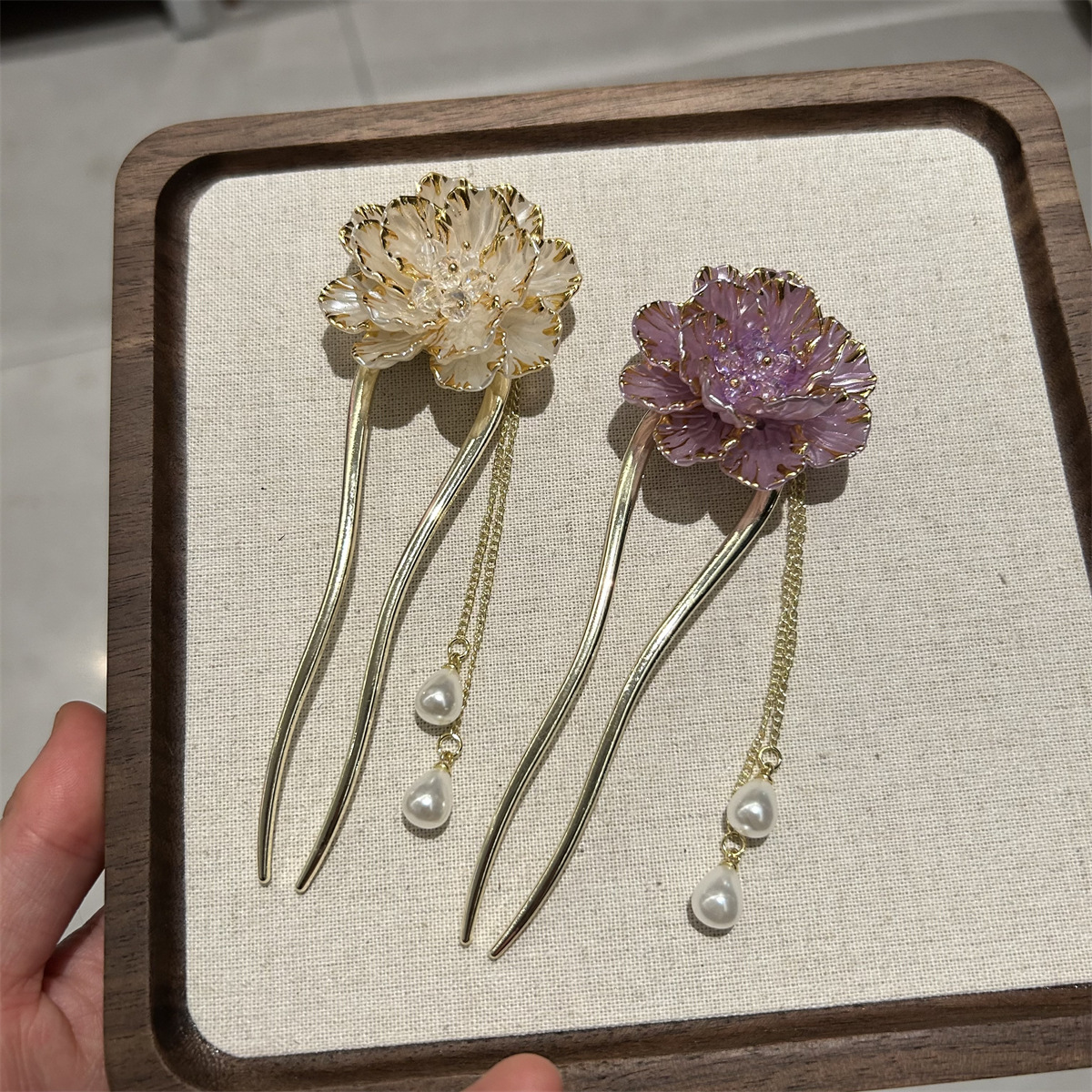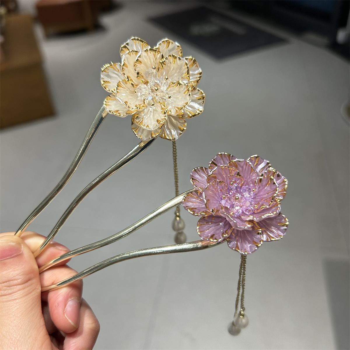 复古珐琅彩国风牡丹花发簪新中式古风高级感气质发饰发钗簪子