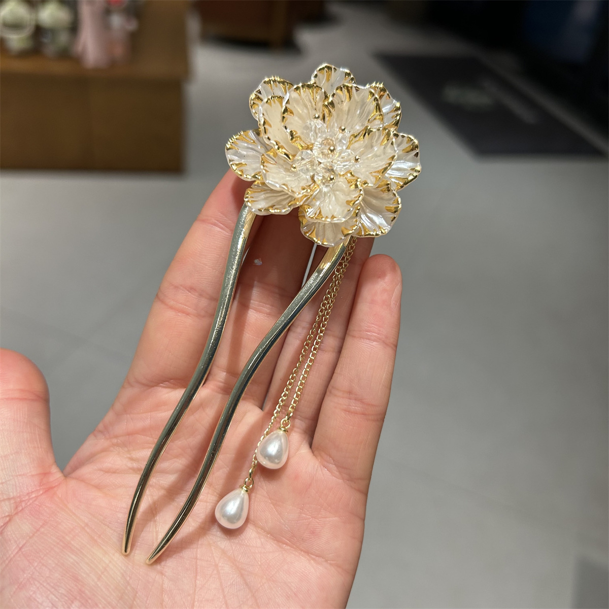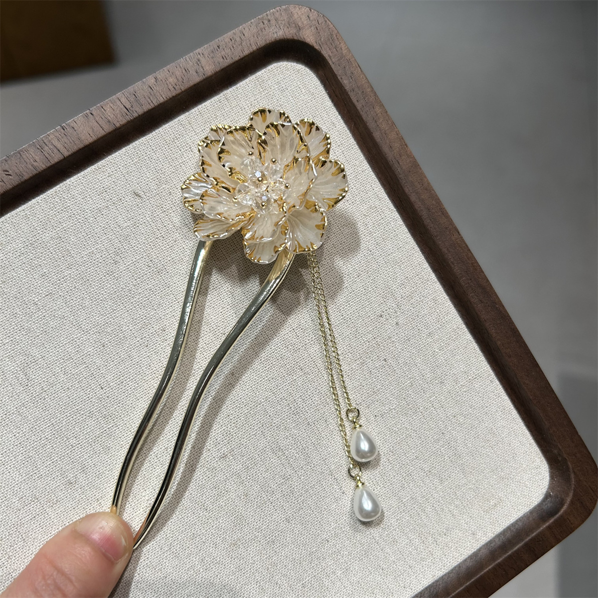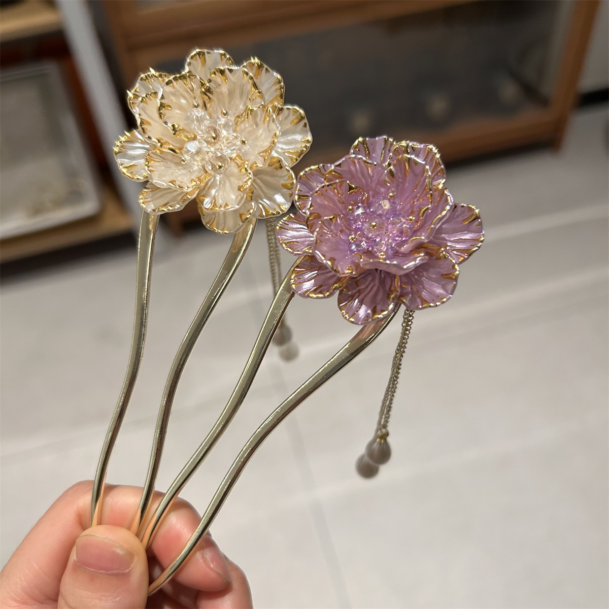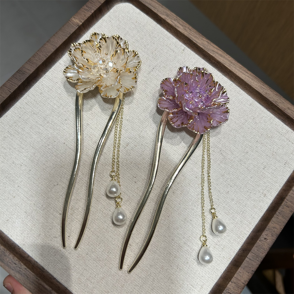 复古珐琅彩国风牡丹花发簪新中式古风高级感气质发饰发钗簪子
