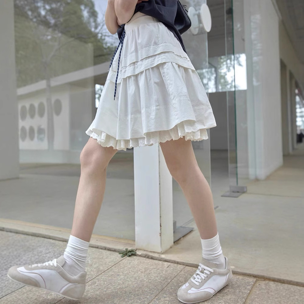 1313白月光活力A字层次花边小白裙夏日女抽绳半身裙短裙