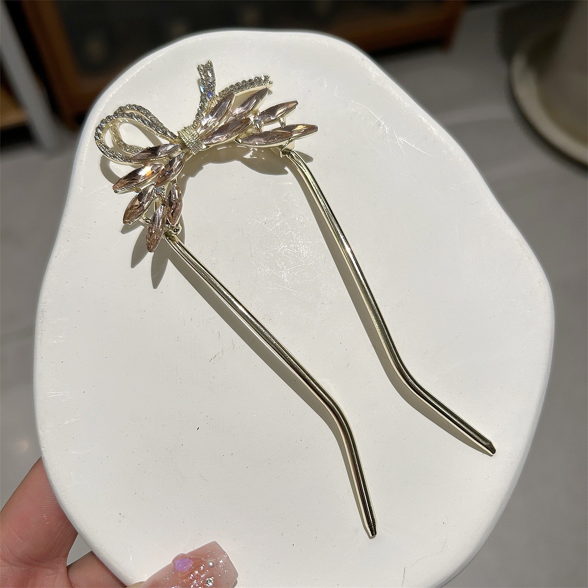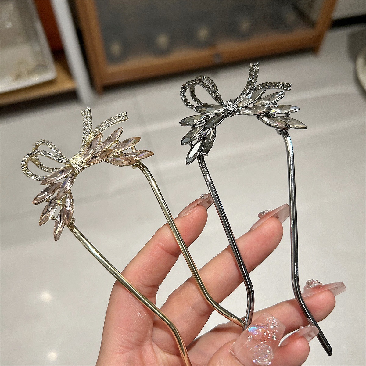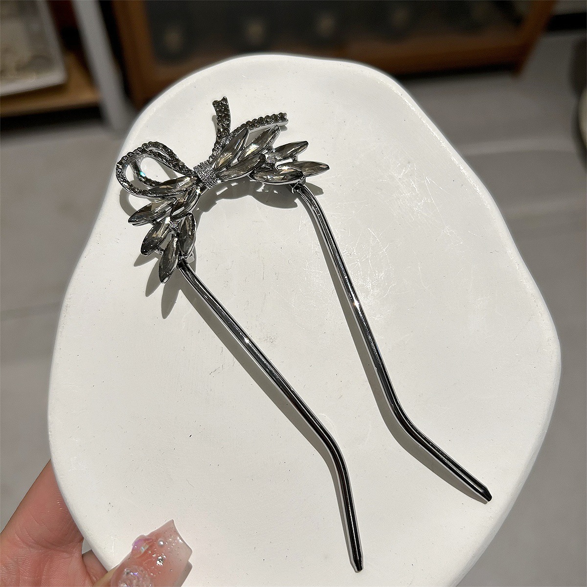 天鹅发钗高级感水钻锆石盘发器U型发簪女复古锆石水晶后脑勺发插