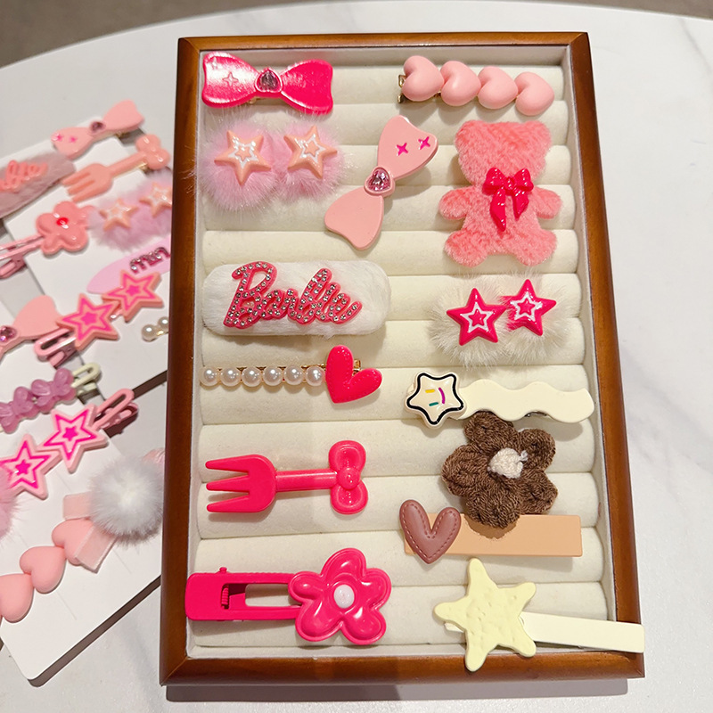 新款年毛绒粉色发夹少女刘海侧边碎发发卡可爱夹子爱心发夹bb