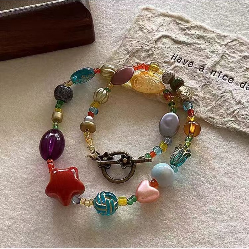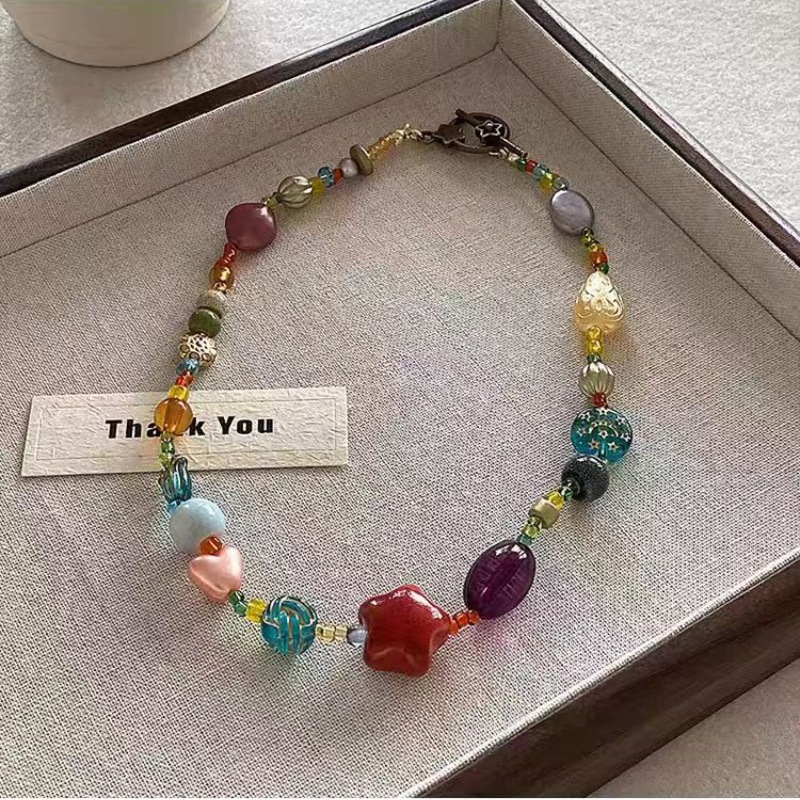 夏日彩色多巴胺项链女款新款爆款颈链锁骨链民族度假风配裙子