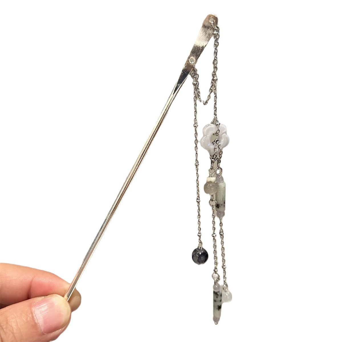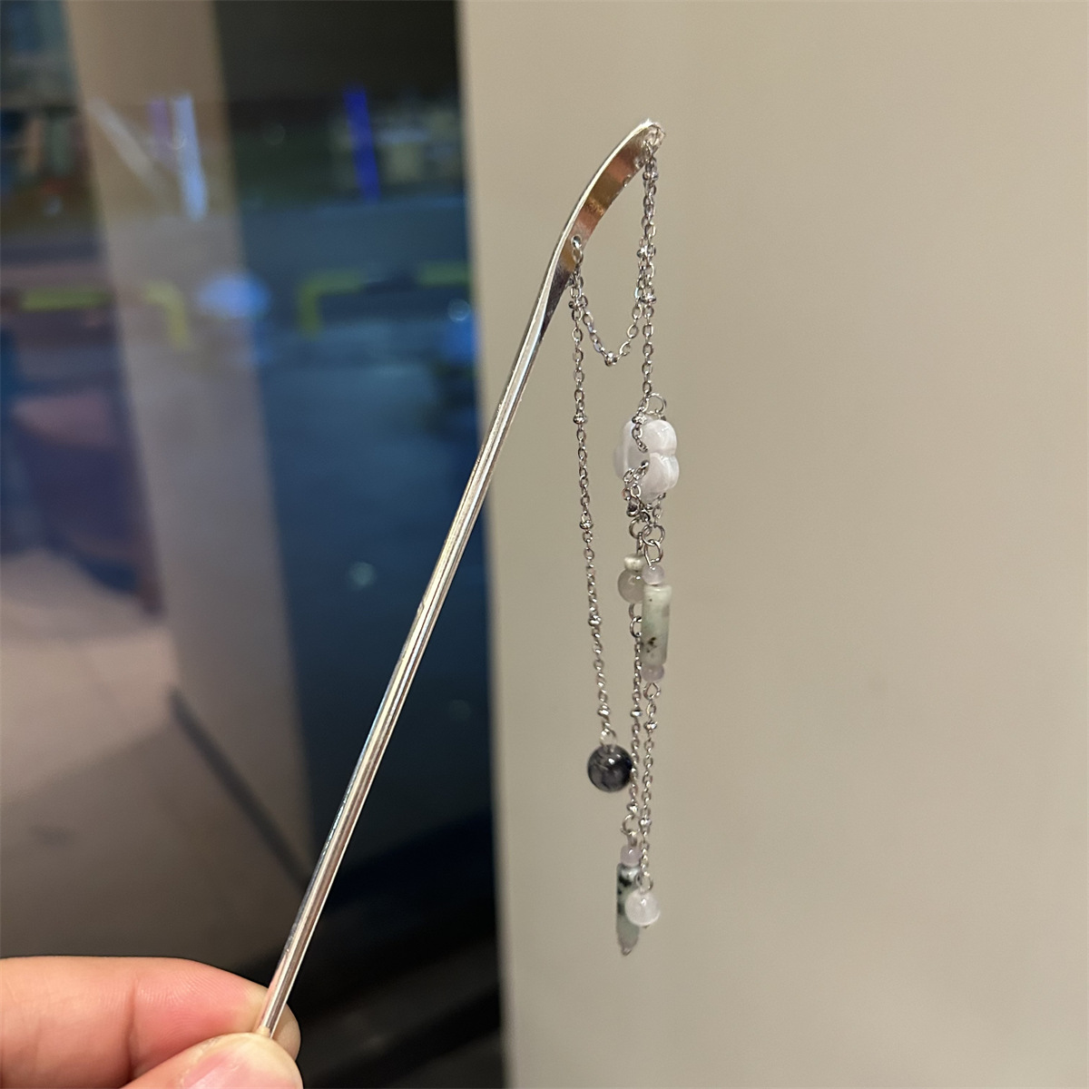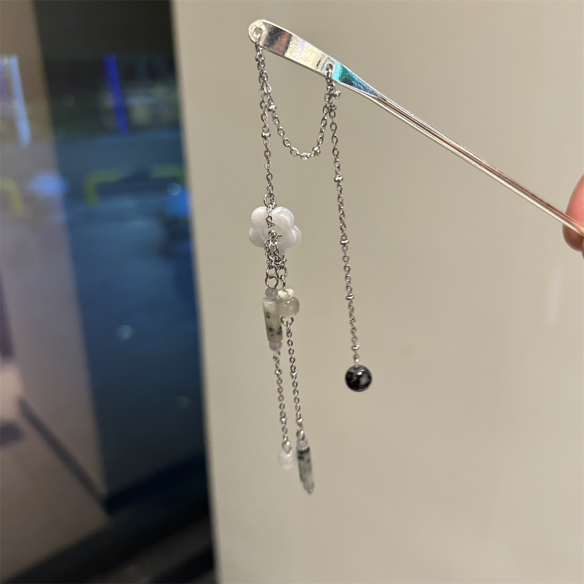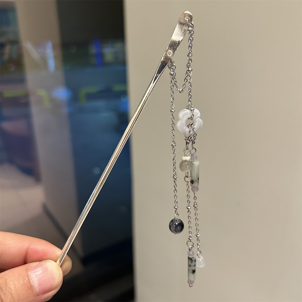 国潮复古几何圆珠花朵流苏发簪后脑勺盘发发钗旗袍汉服新中式发饰