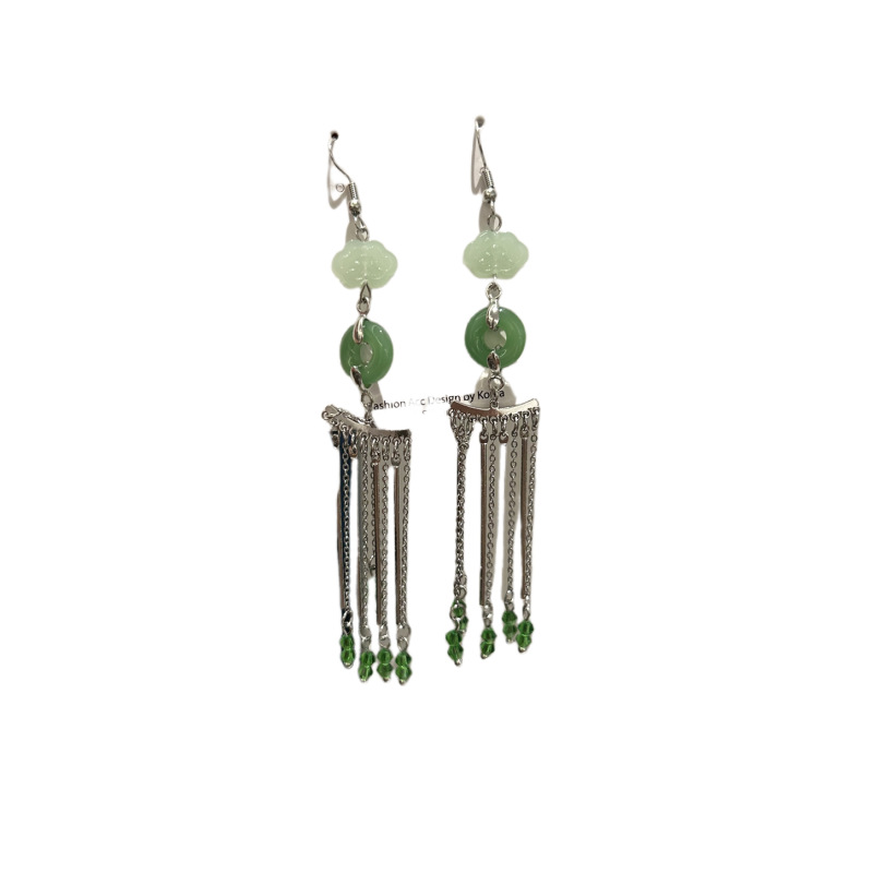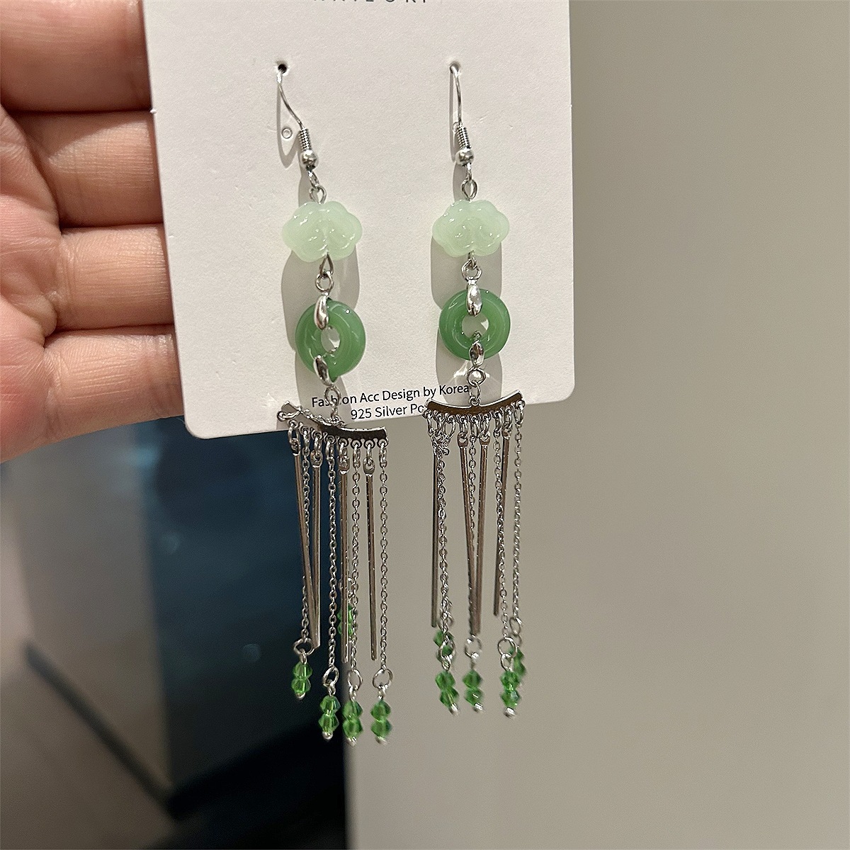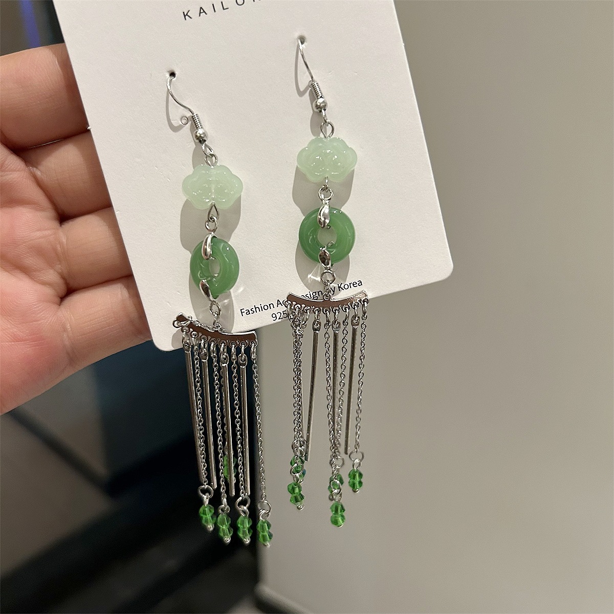 新中式汉服流苏耳环中国风古装天然玉石步摇仙气耳钉小众设计耳挂