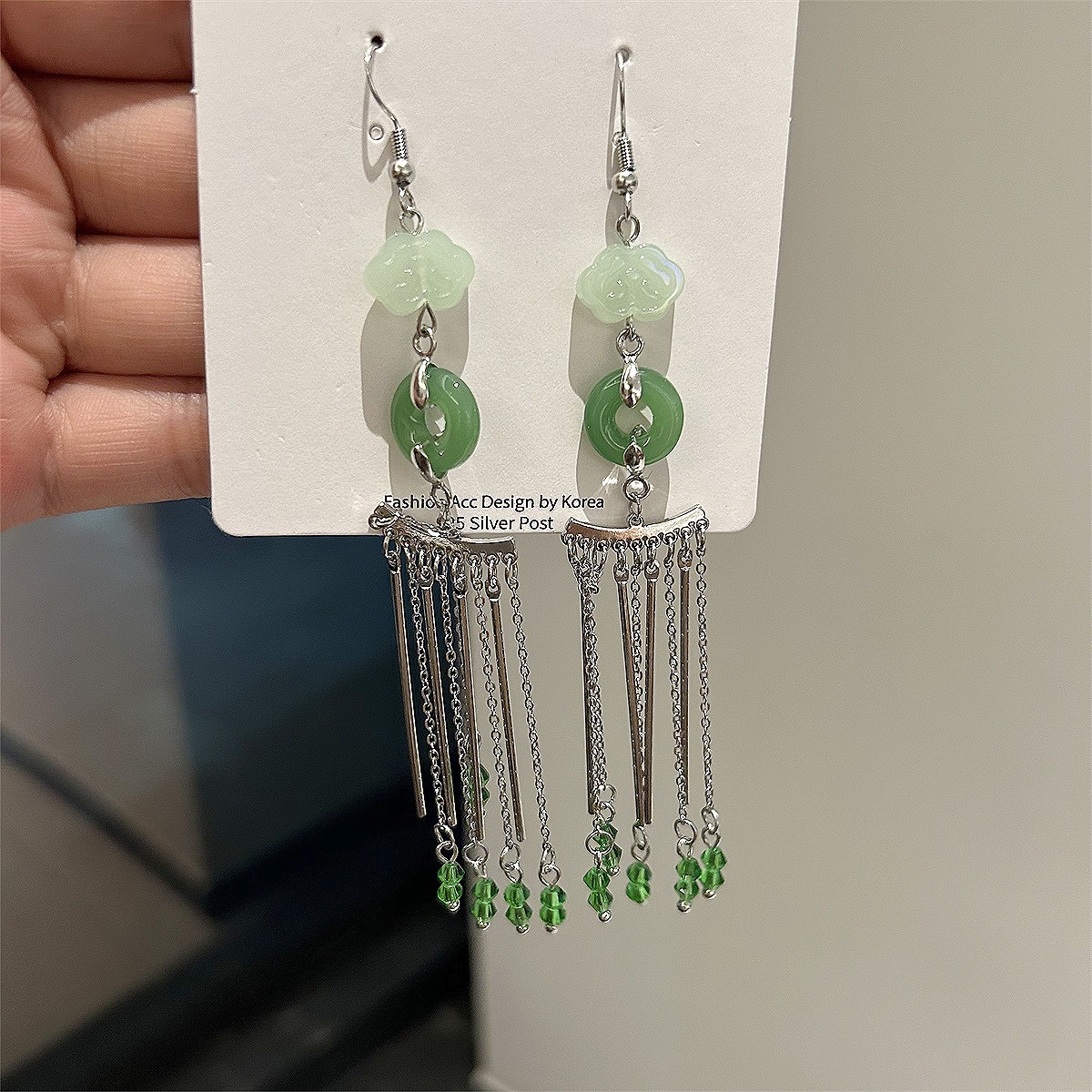 新中式长款创意耳环高级感小众设计耳钉旗袍古装配饰玉石绿耳饰品