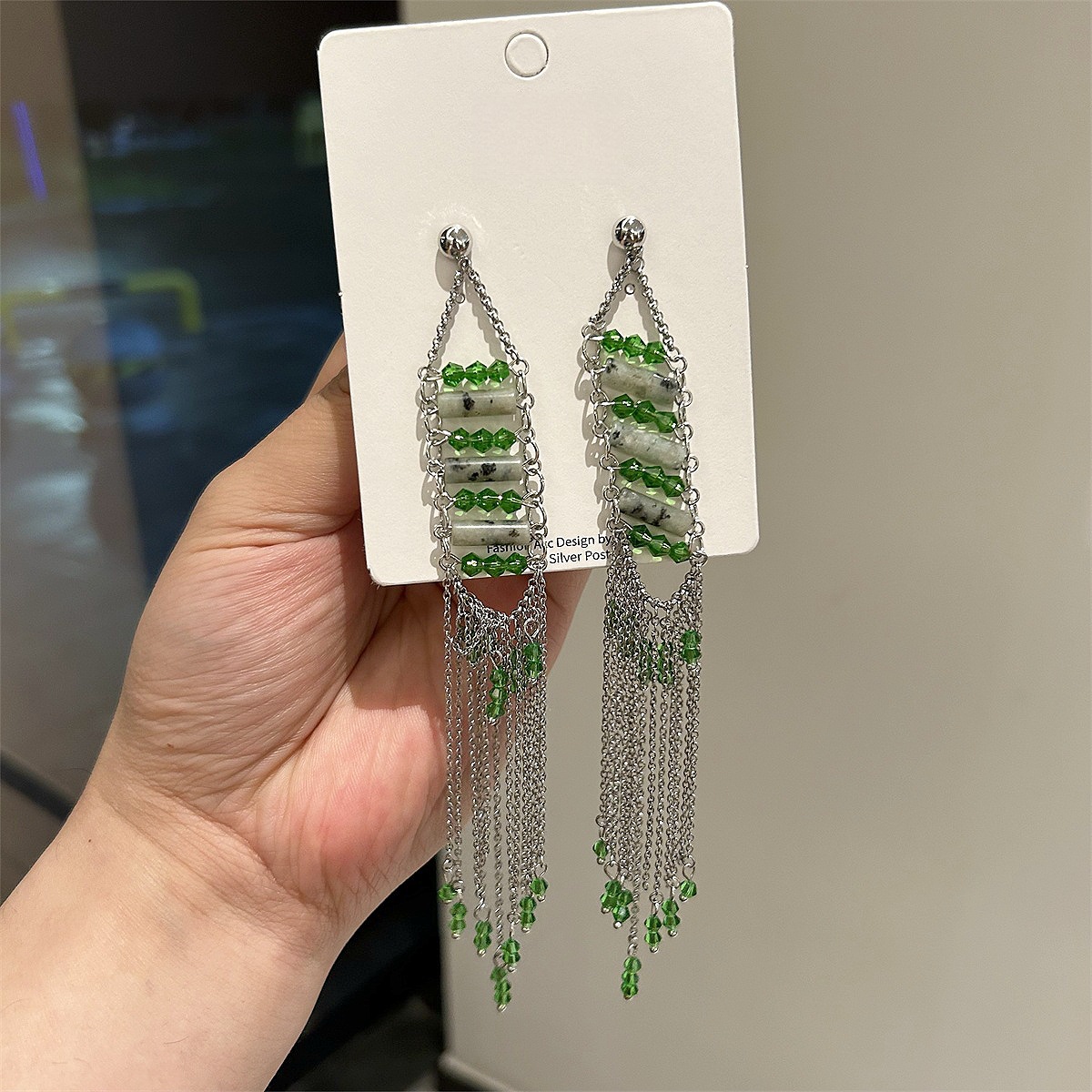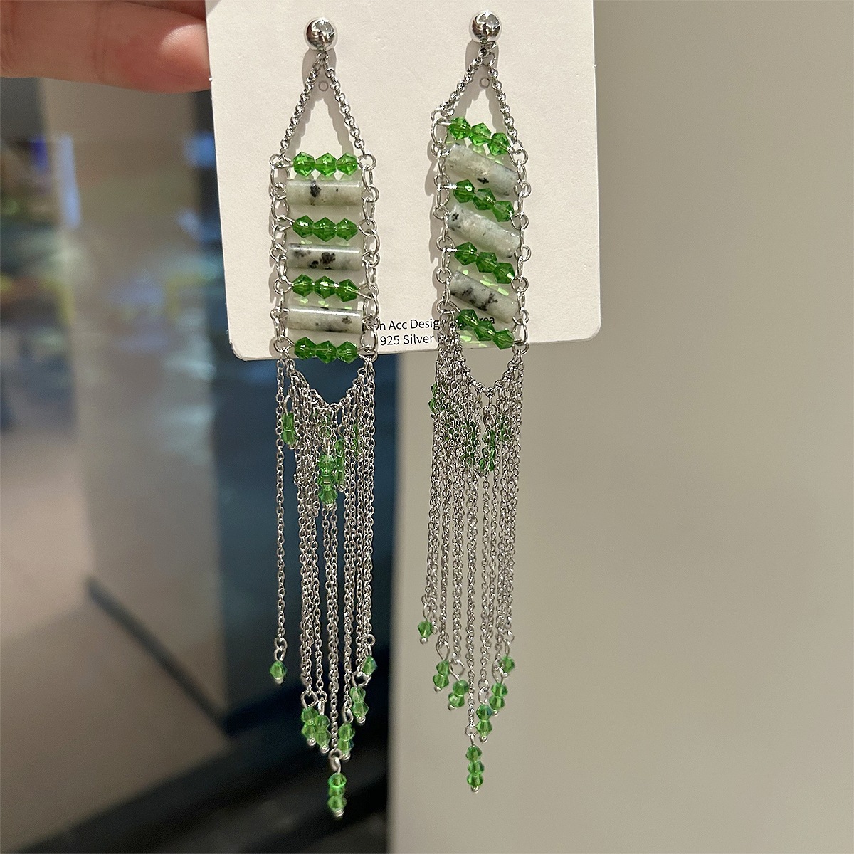 玉石银针流苏耳钉