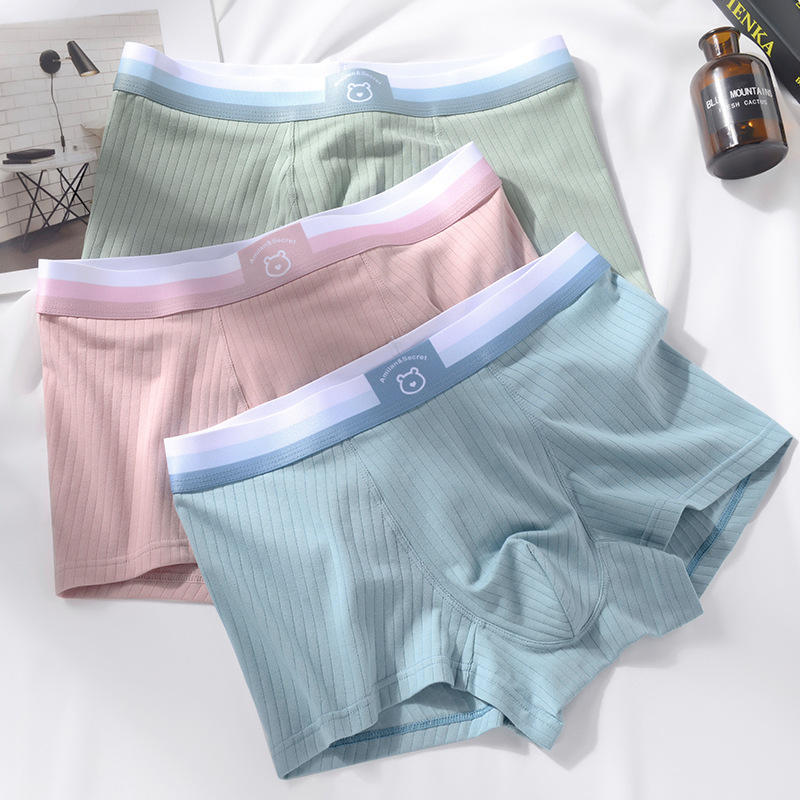 新款纯棉舒适条纹男士内裤渐变纯色潮流中腰男士平角内裤