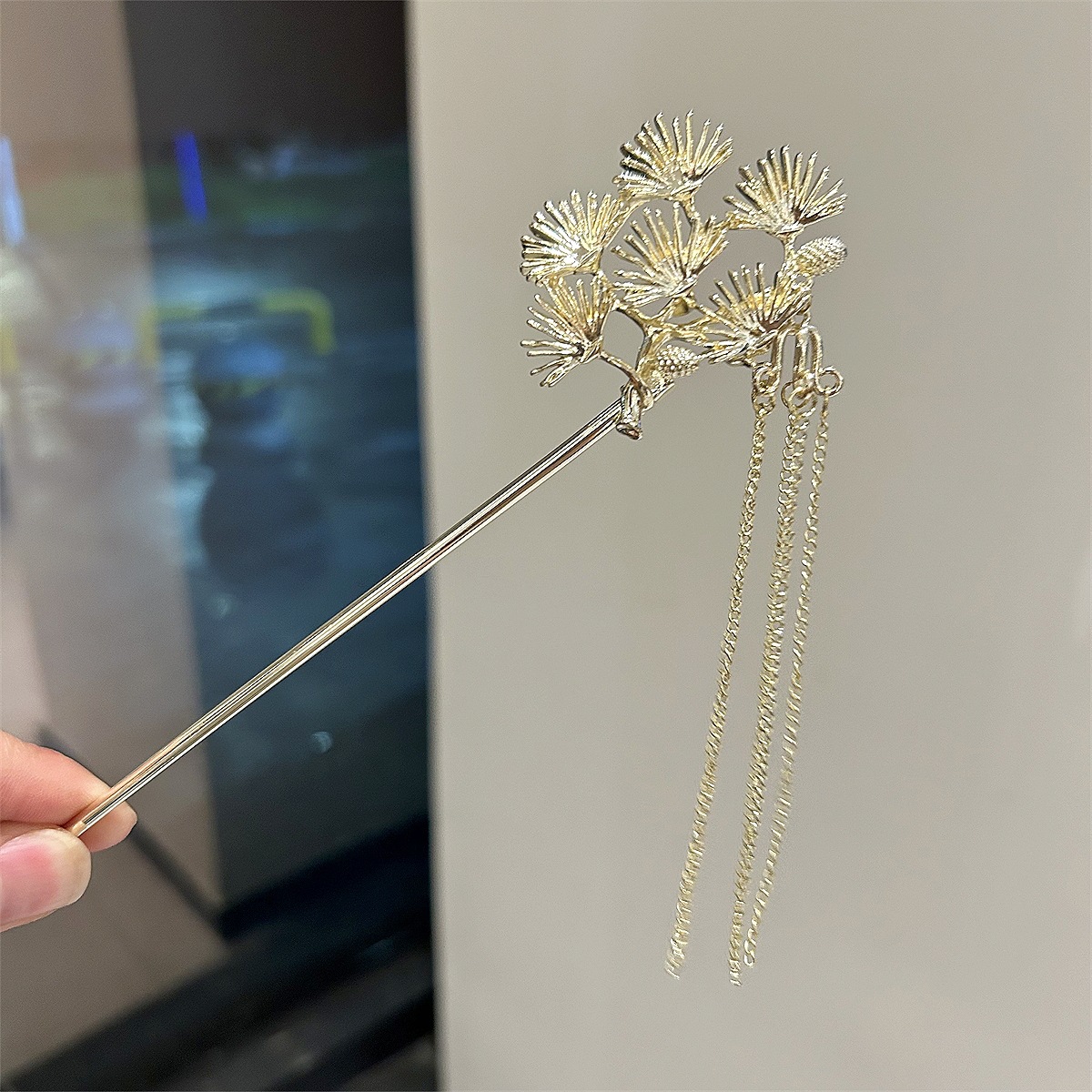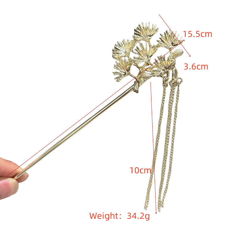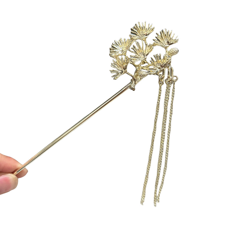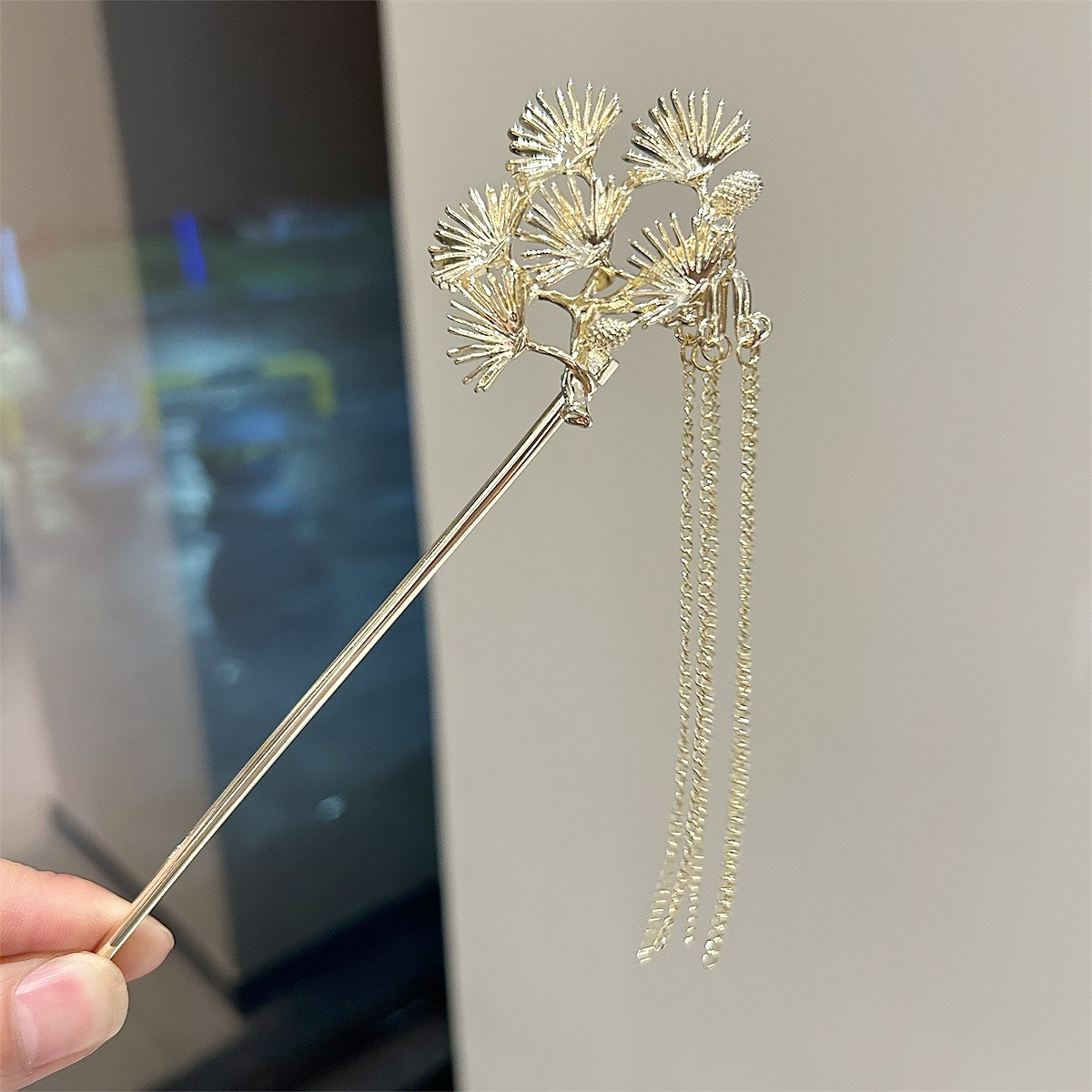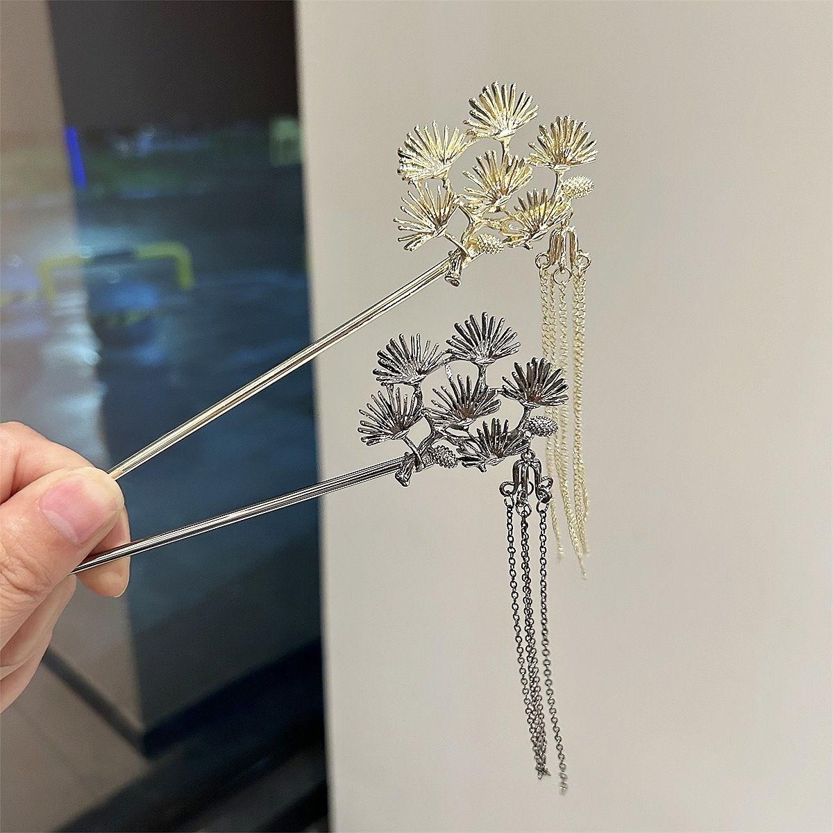 新中式迎客松枝叶子发簪金属铁树流苏发叉古装马面裙配饰发饰发钗