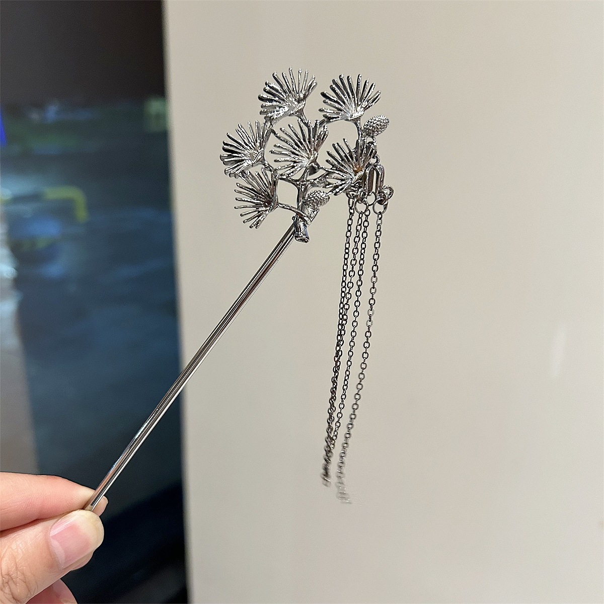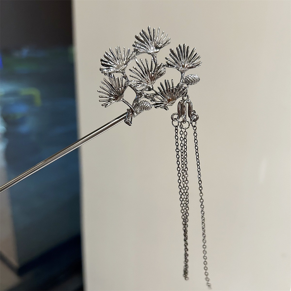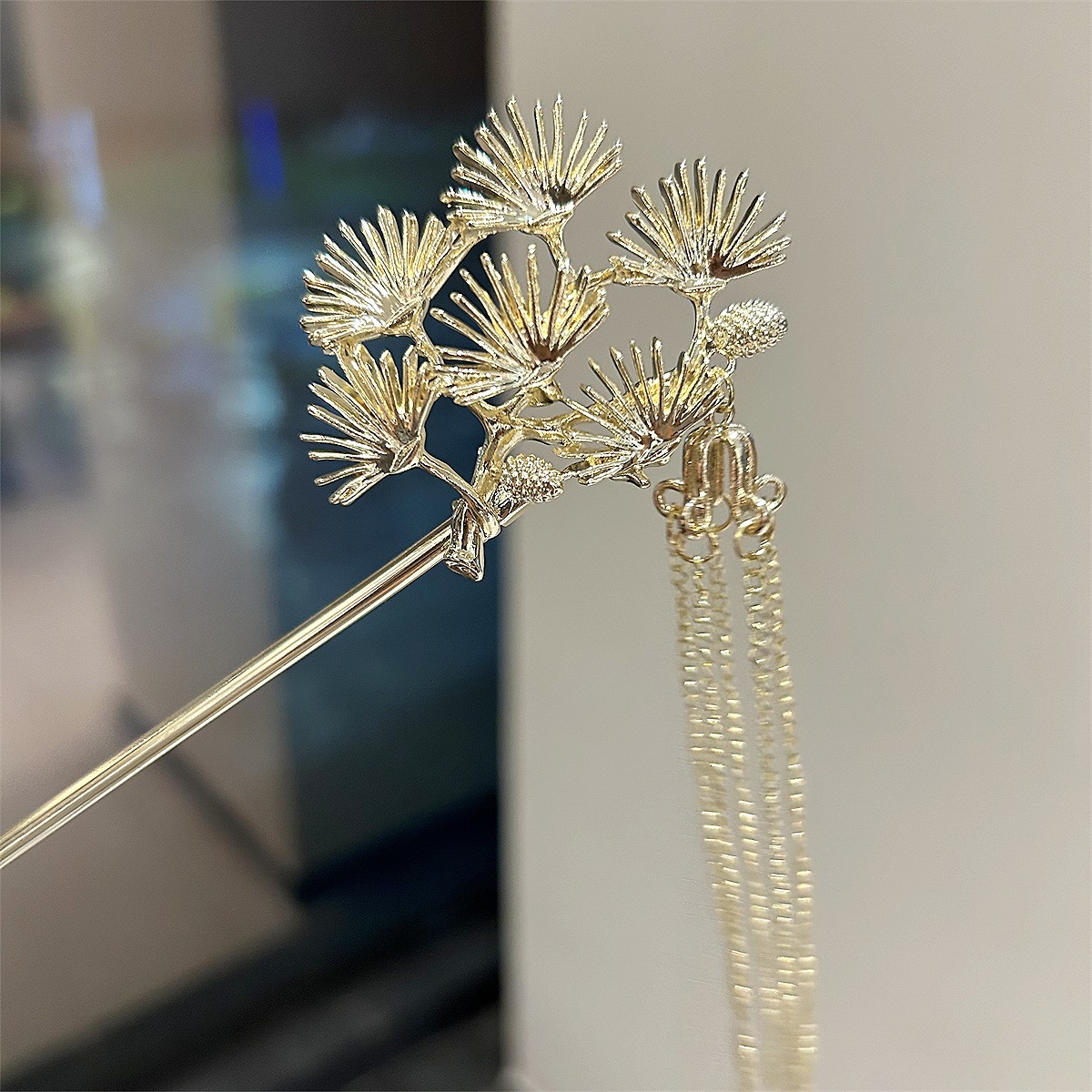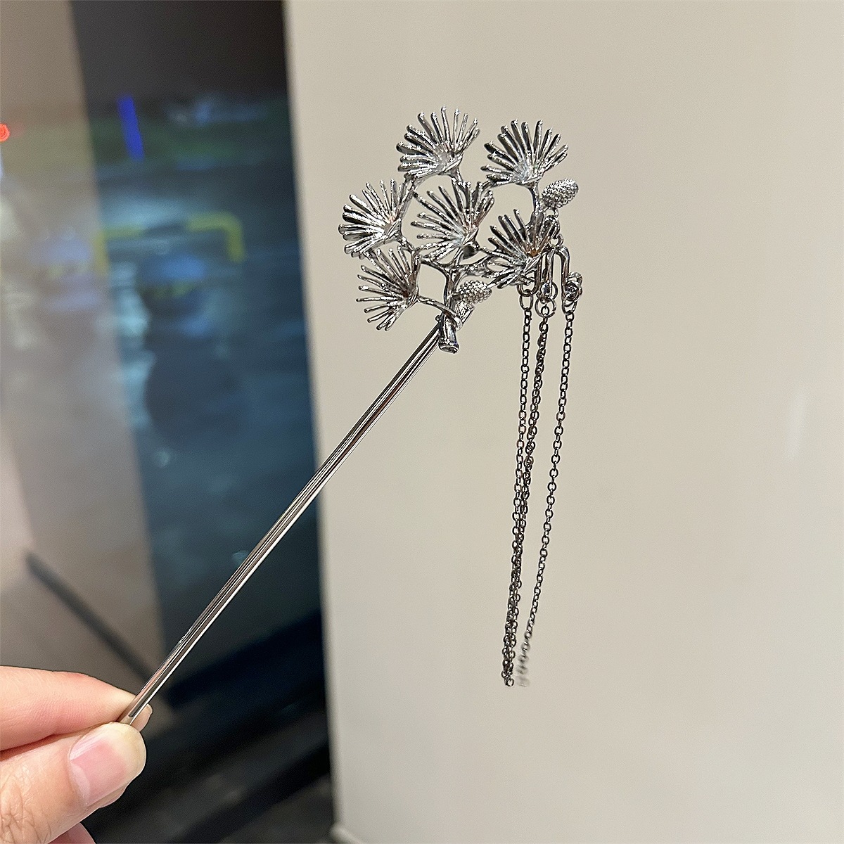 新中式迎客松枝叶子发簪金属铁树流苏发叉古装马面裙配饰发饰发钗