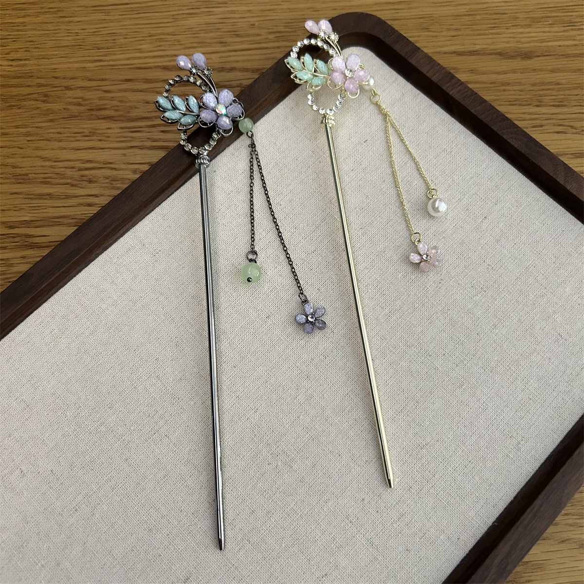 高级感超仙古风花朵流苏发簪女高级感盘发簪子旗袍汉服发钗发饰