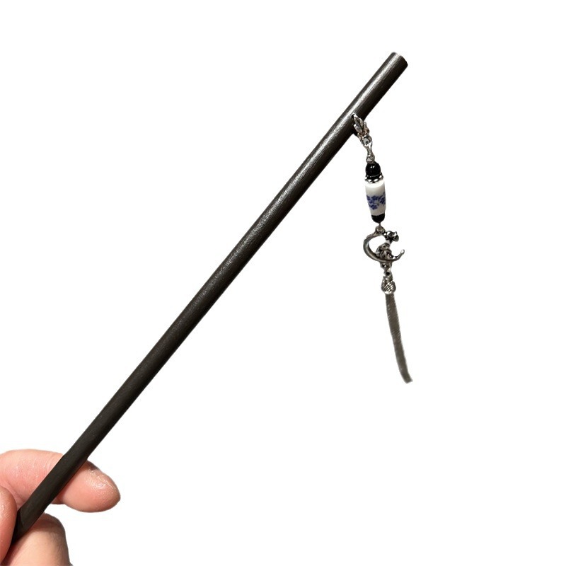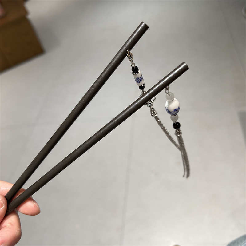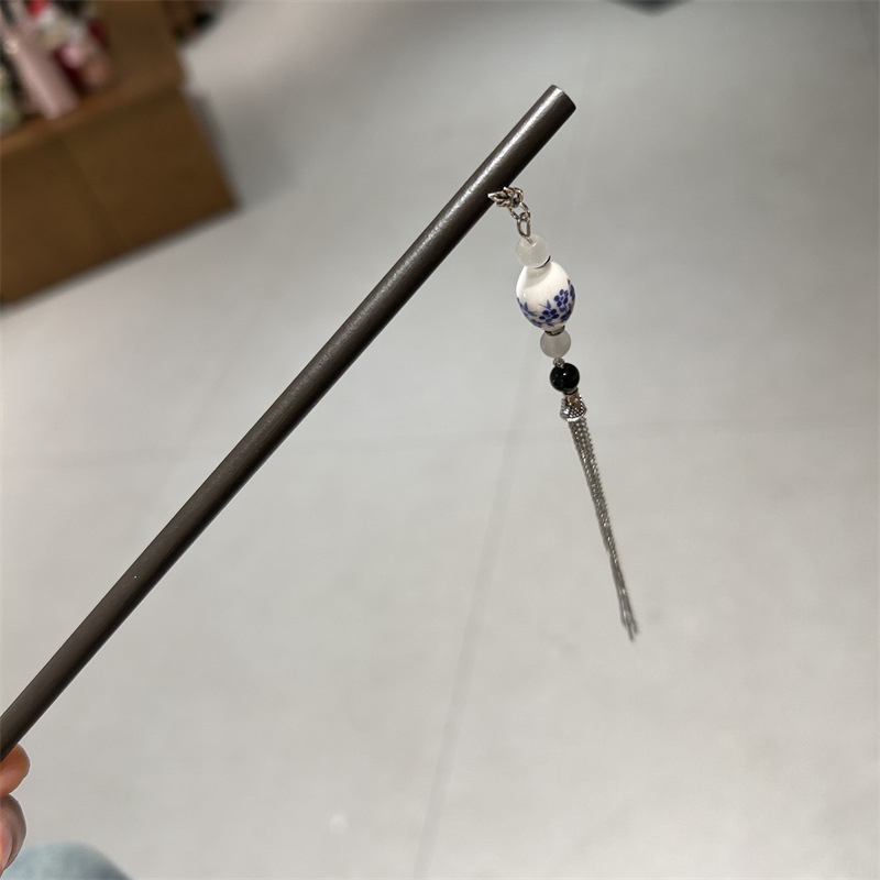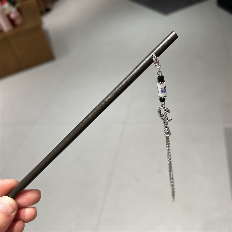 青花瓷古银做旧流苏木簪新中步步摇盘发簪子期盼汉服日常筷子发簪